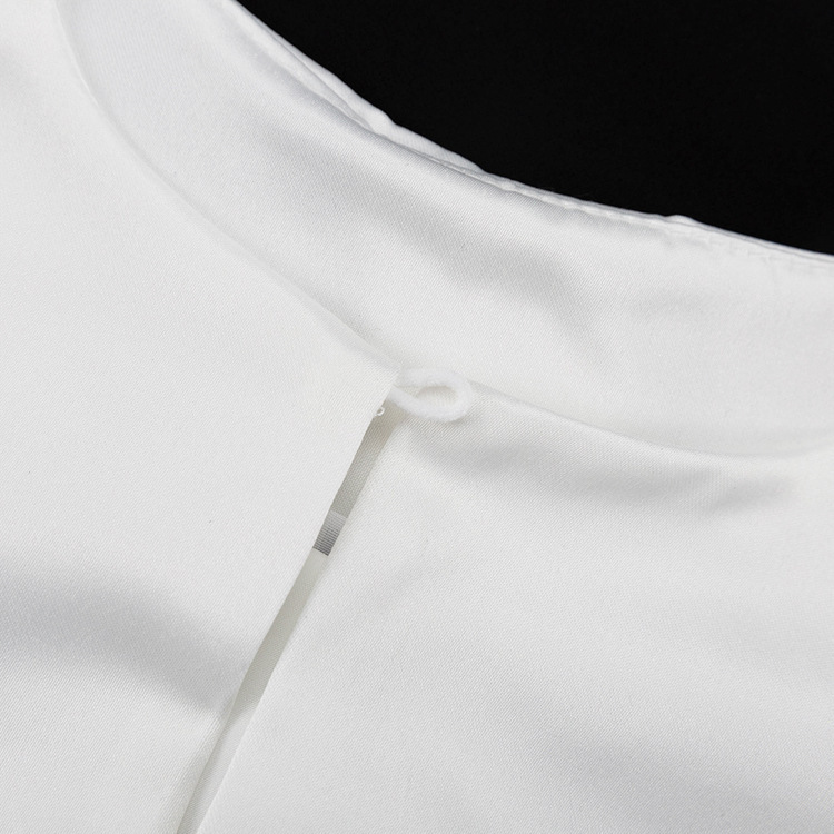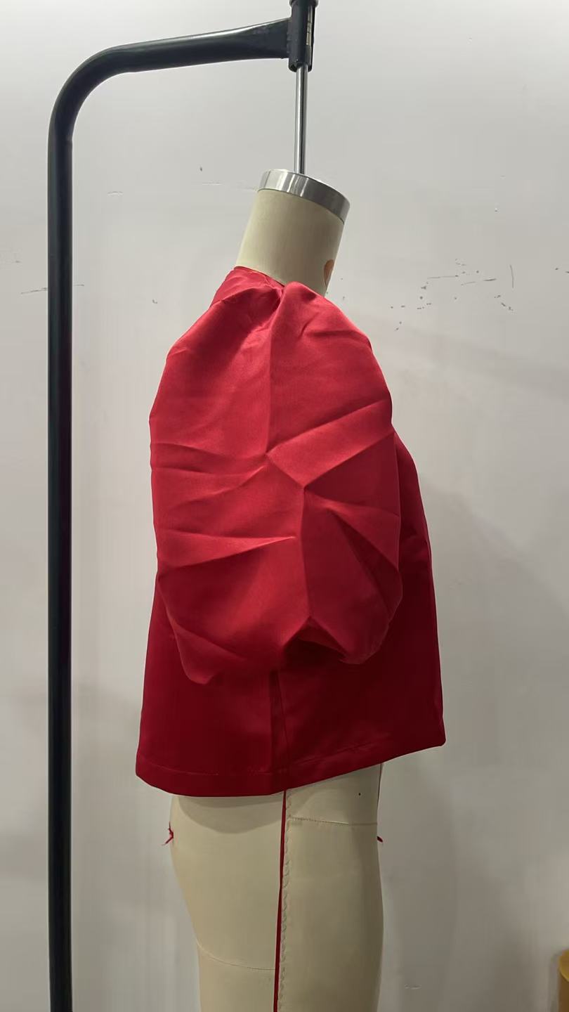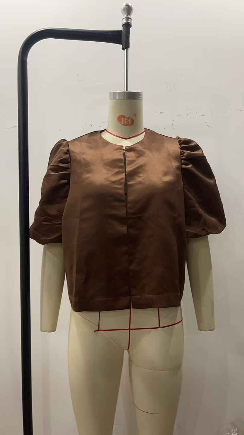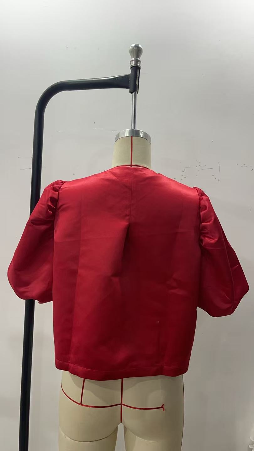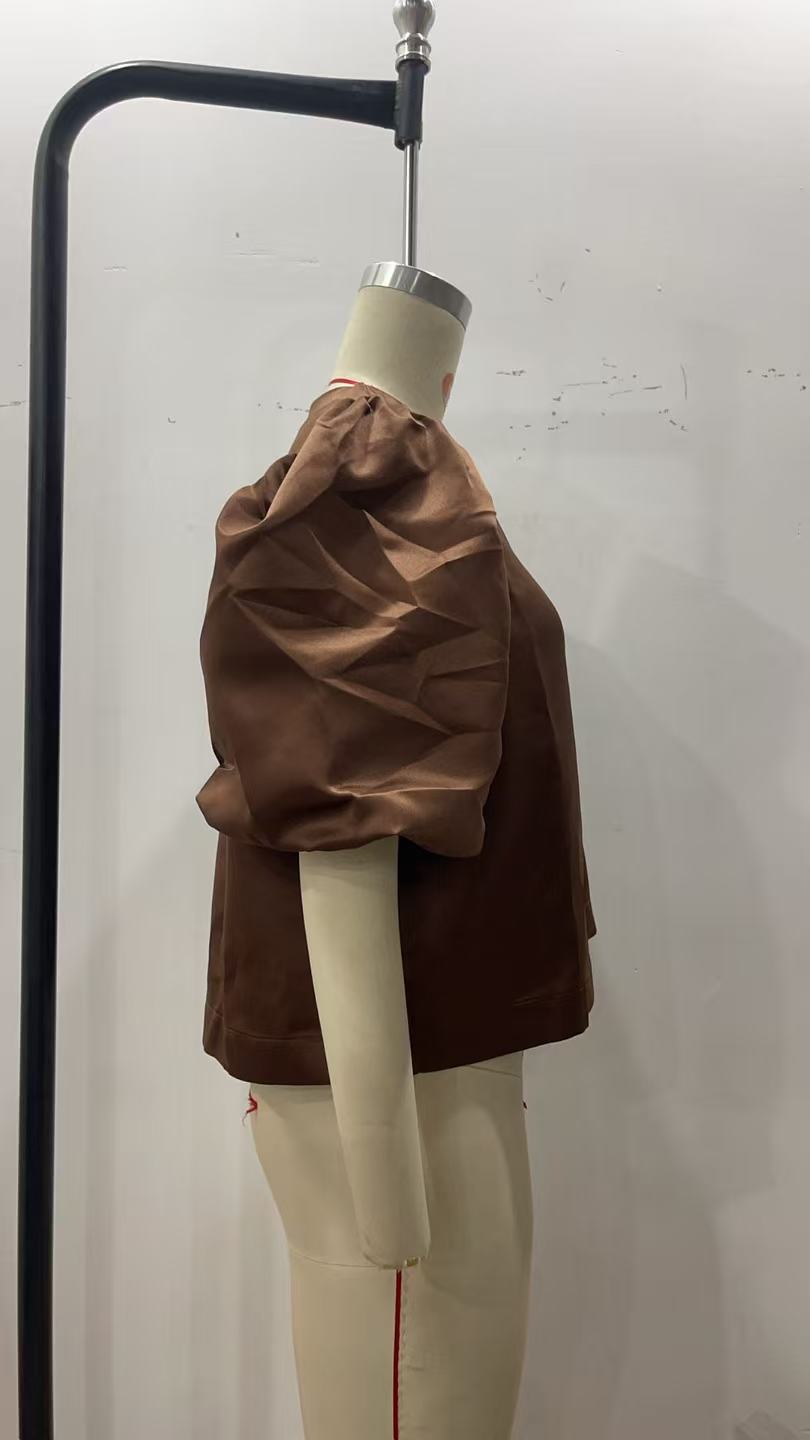 재고-유럽과 미국 국경 2024 새로운 패션 새틴 버블 소매 짧은 느슨한 프랑스 간단한 셔츠