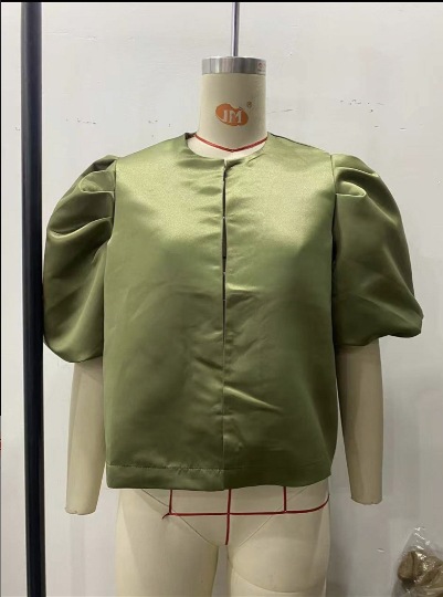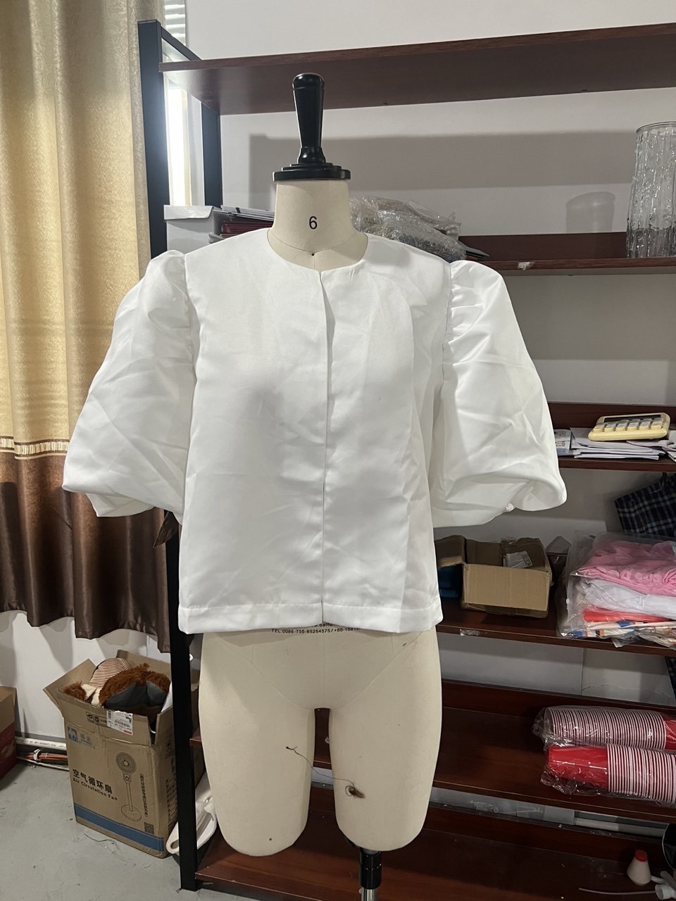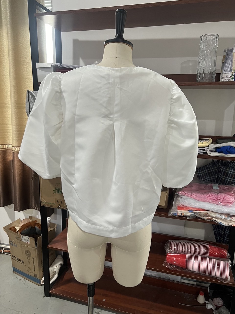 재고-유럽과 미국 국경 2024 새로운 패션 새틴 버블 소매 짧은 느슨한 프랑스 간단한 셔츠스토어 가기
