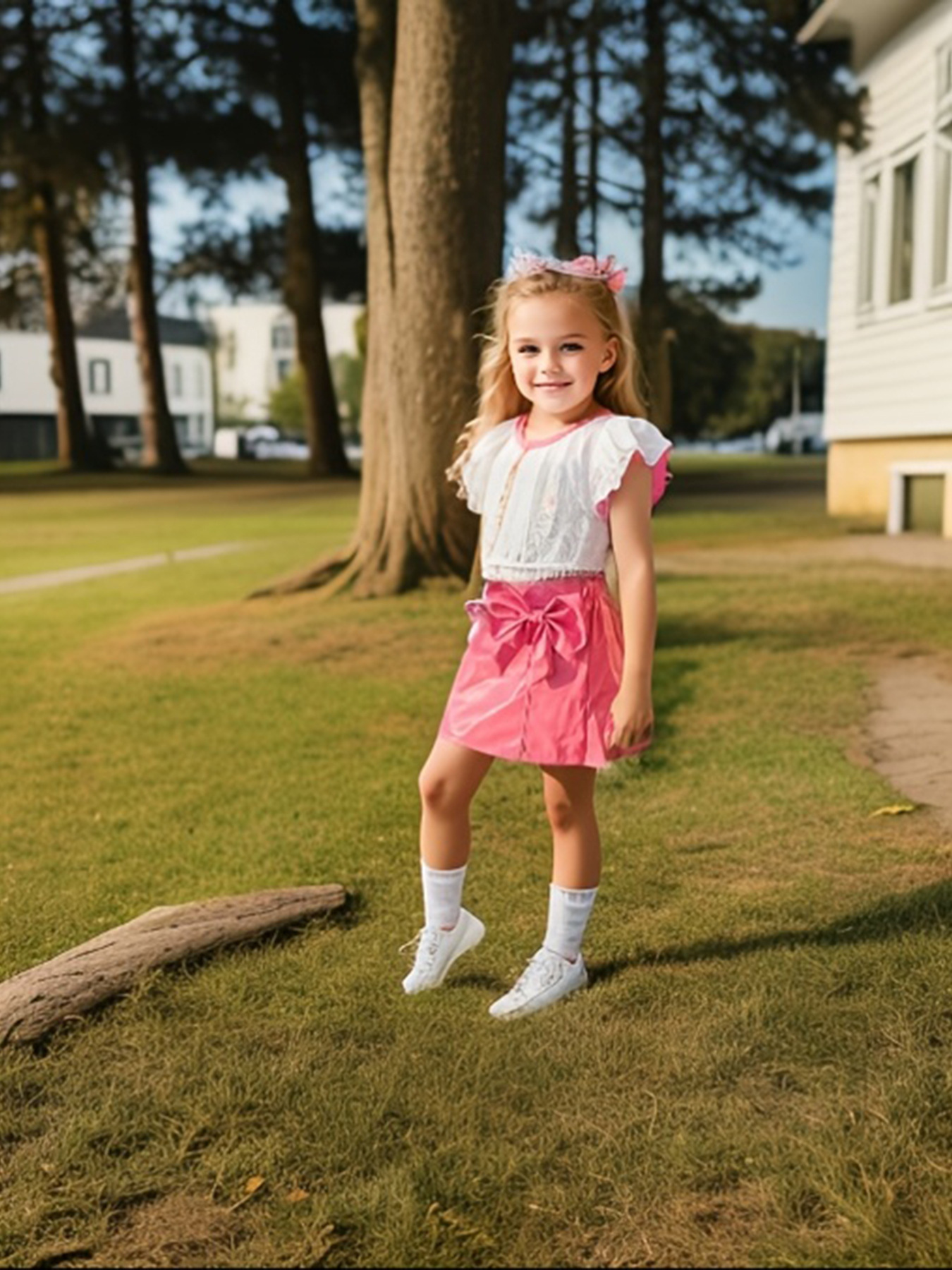 젊은 소녀 단색 PU 가죽 활 세부 사항 캐주얼 원피스 핑크 치마