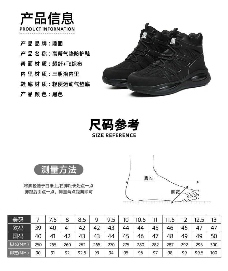 국경 간 노동 보호 신발 반 스매시 방지 경량 에어 쿠션 충격 흡수 편안함 안전 신발 겨울 보호 신발 남성 도매스토어 가기