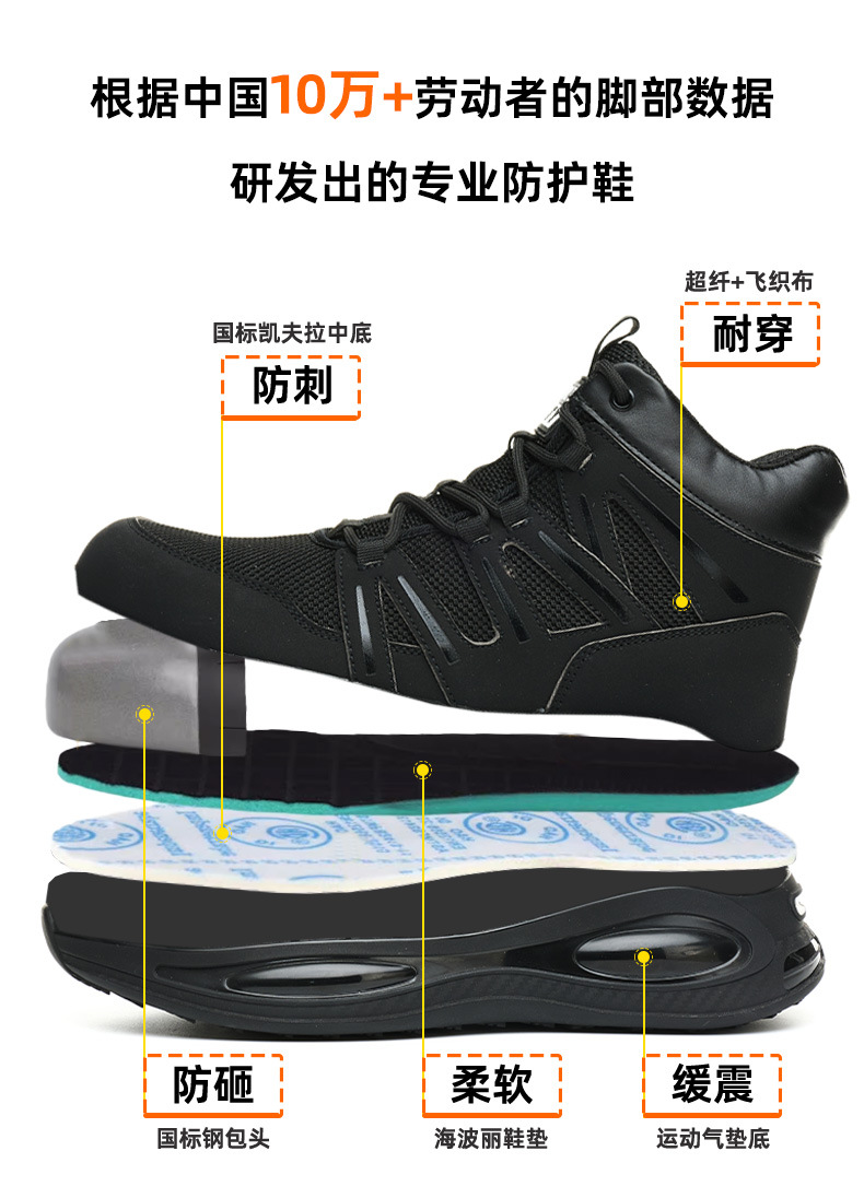 국경 간 노동 보호 신발 반 스매시 방지 경량 에어 쿠션 충격 흡수 편안함 안전 신발 겨울 보호 신발 남성 도매
