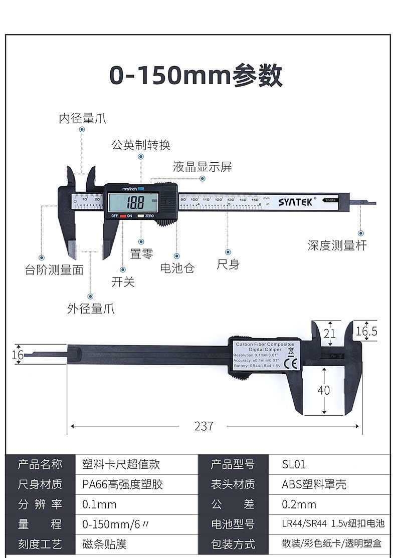전자 디지털 디스플레이 고정밀 플라스틱 버니어 캘리퍼 원 보석 놀이 작은 0-150 측정 옥 팔찌 가구스토어 가기