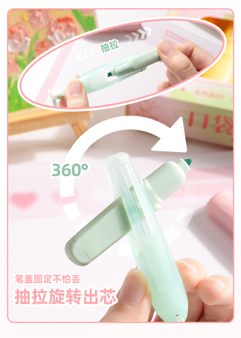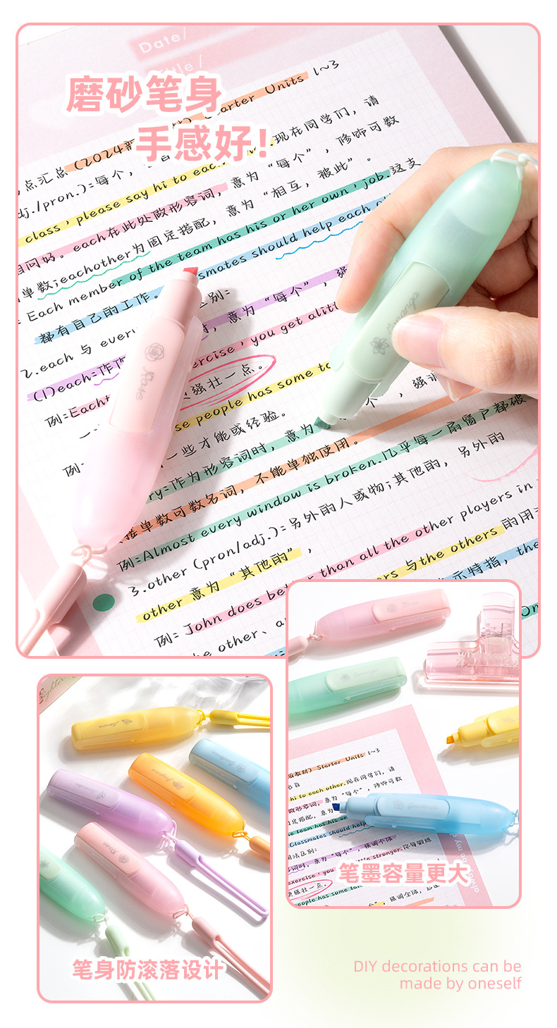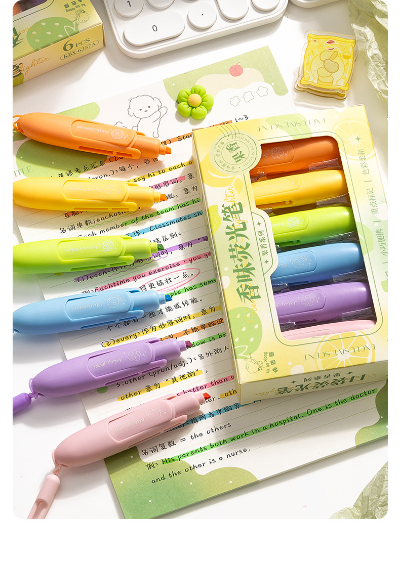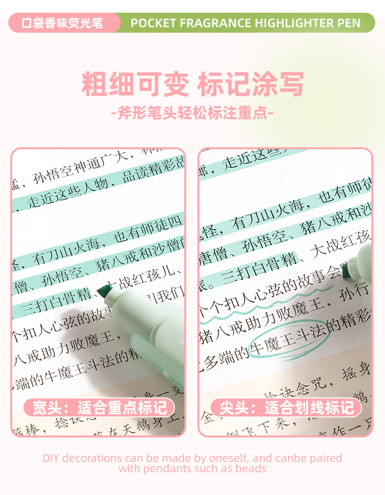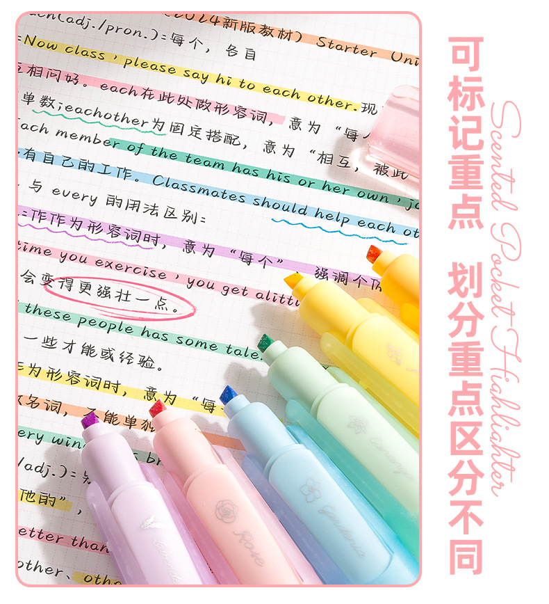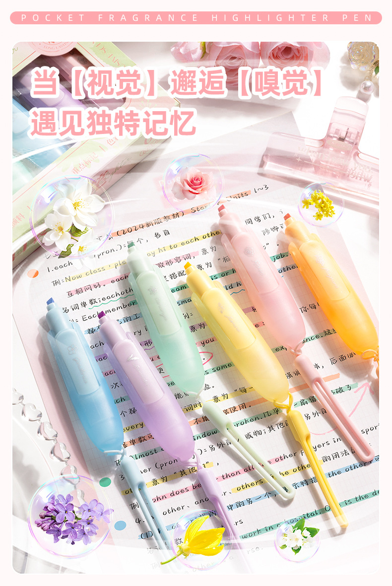 향기로운 하이라이트 경사 머리 높은 색 가치 학생 손 계정 컬러 펜 로타리 스트로크 키 마크 펜 휴대용 포켓 펜
