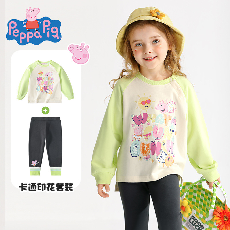 돼지 고기 페이지 아기 세트 봄과 가을 소녀 스웨트 셔츠 아기 레깅스 어린이 의류 2 피스 아동복 봄 옷스토어 가기