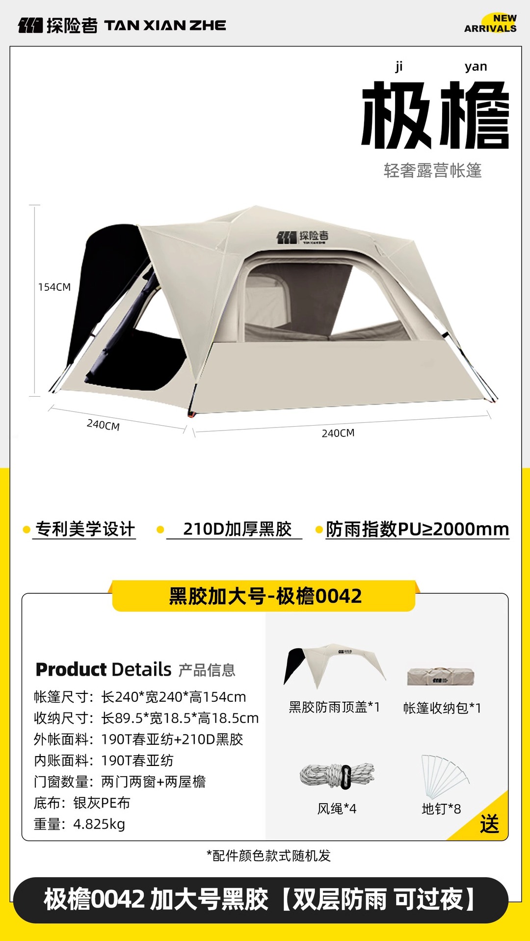 탐험가 텐트 야외 캠핑 밤새 폭풍우 방지 접이식 자동 비닐 캠핑 장비 2024 새로운 극지 처마스토어 가기