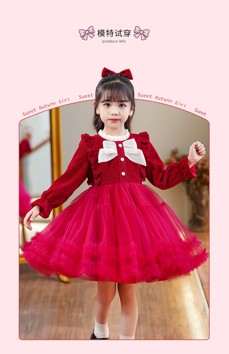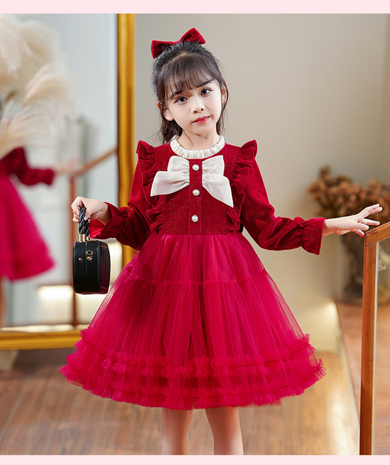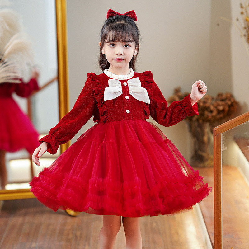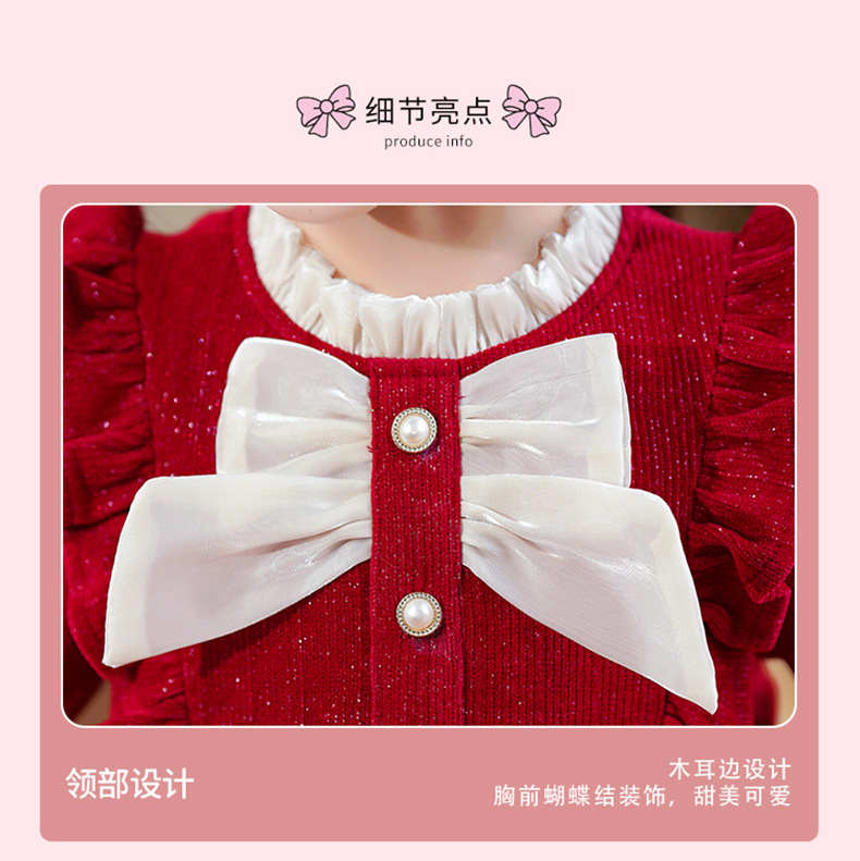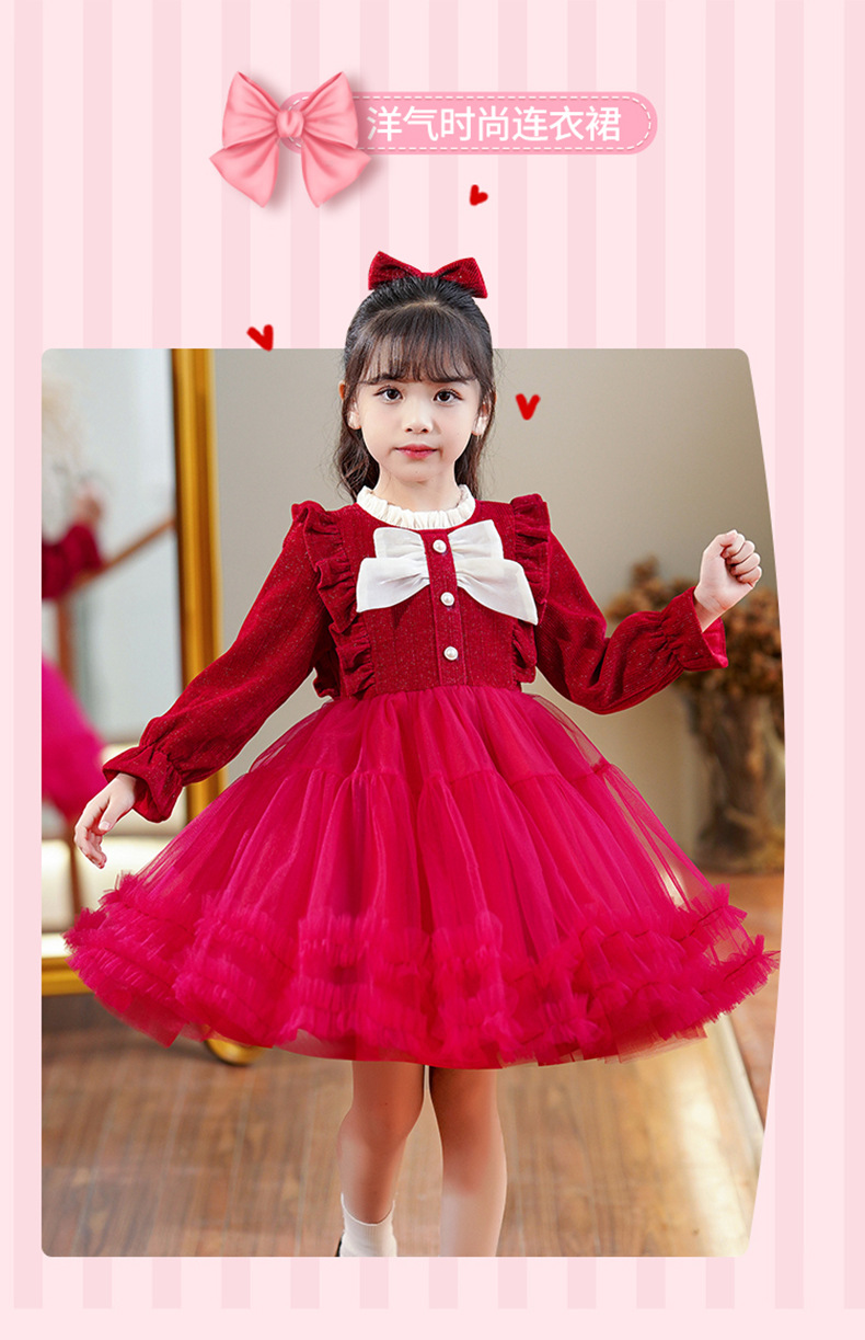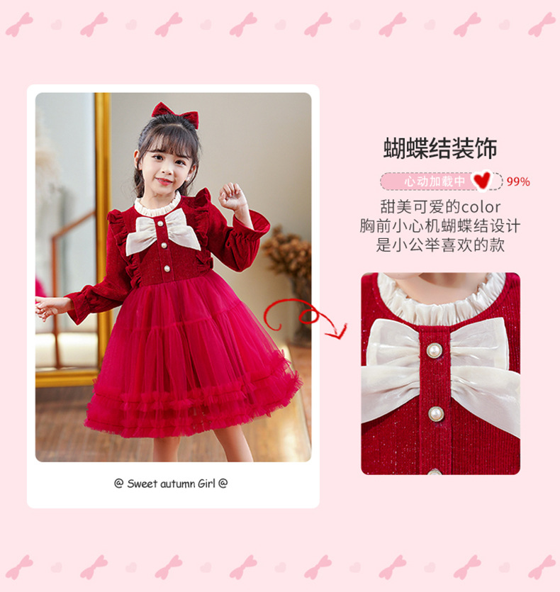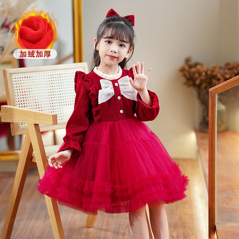 소녀 원피스 레드 기모 겨울 원피스 어린 소녀의 세련된 유행 인터넷 축하 신년 옷스토어 가기