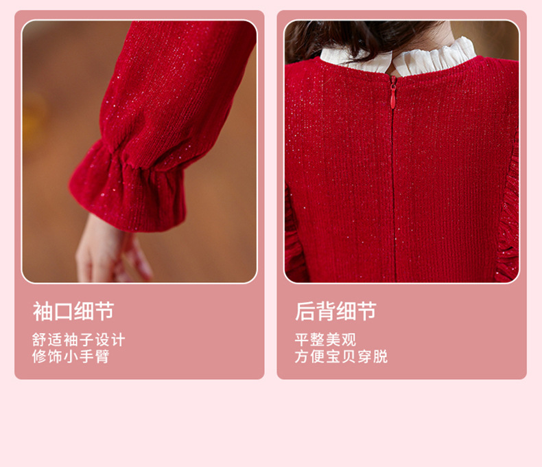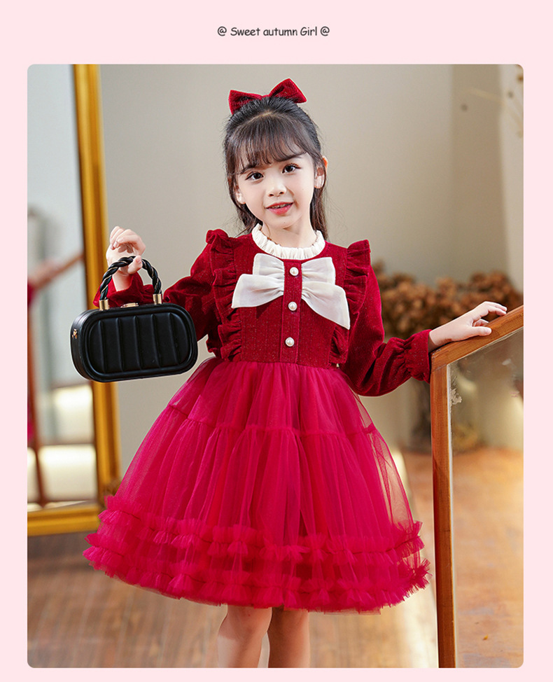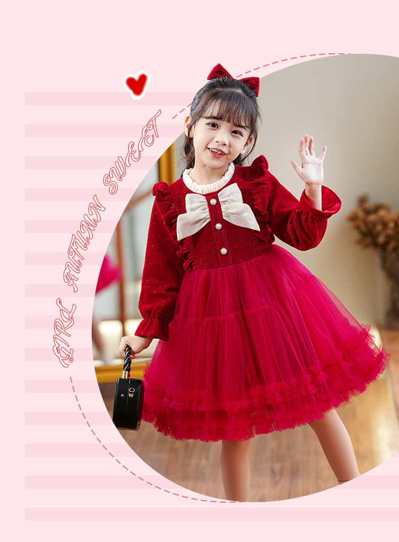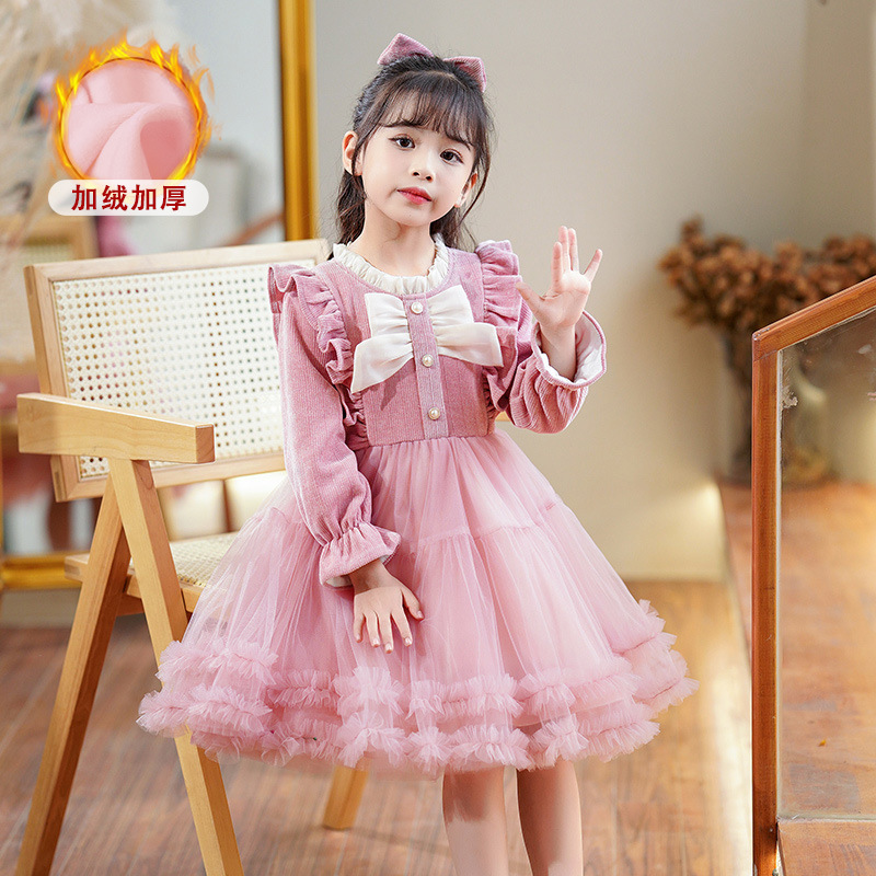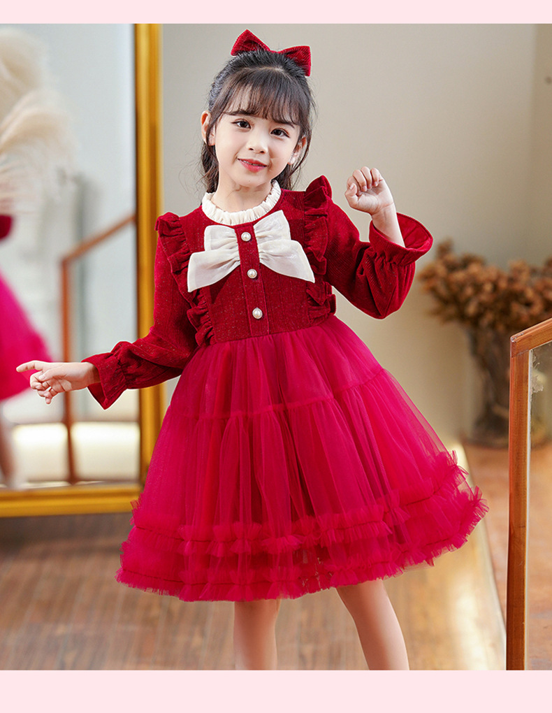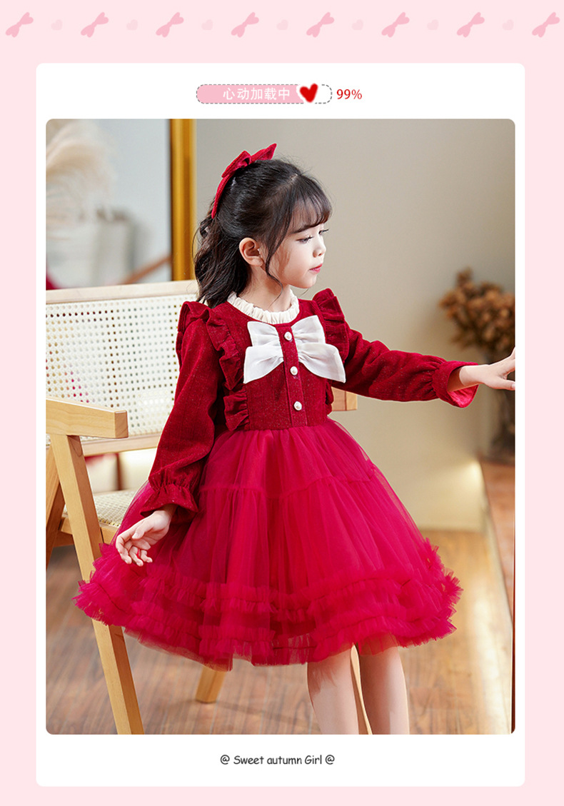 소녀 원피스 레드 기모 겨울 원피스 어린 소녀의 세련된 유행 인터넷 축하 신년 옷스토어 가기