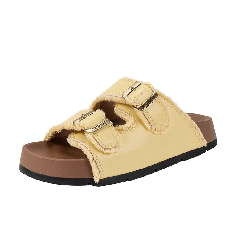 여성을위한 두꺼운 밑창 Birkenstock 슬리퍼 여름 새로운 벨트 버클 하프 슬리퍼 여성 겉옷 한국 스타일 한 단어 비치 슬리퍼