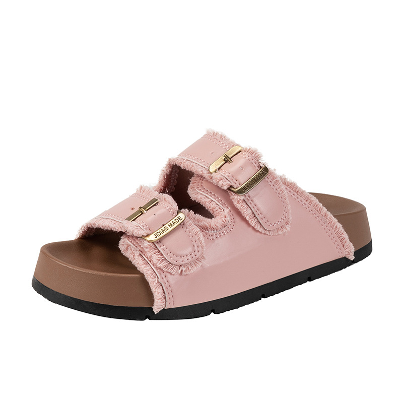 여성을위한 두꺼운 밑창 Birkenstock 슬리퍼 여름 새로운 벨트 버클 하프 슬리퍼 여성 겉옷 한국 스타일 한 단어 비치 슬리퍼스토어 가기