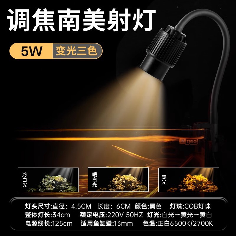 Yee 물고기 탱크 줌 램프 스포트라이트 남쪽 미국 탱크 조경 물 잔디 램프 물고기 탱크 램프 led 물고기 램프 클립 램프 천둥 용 원래 탱크