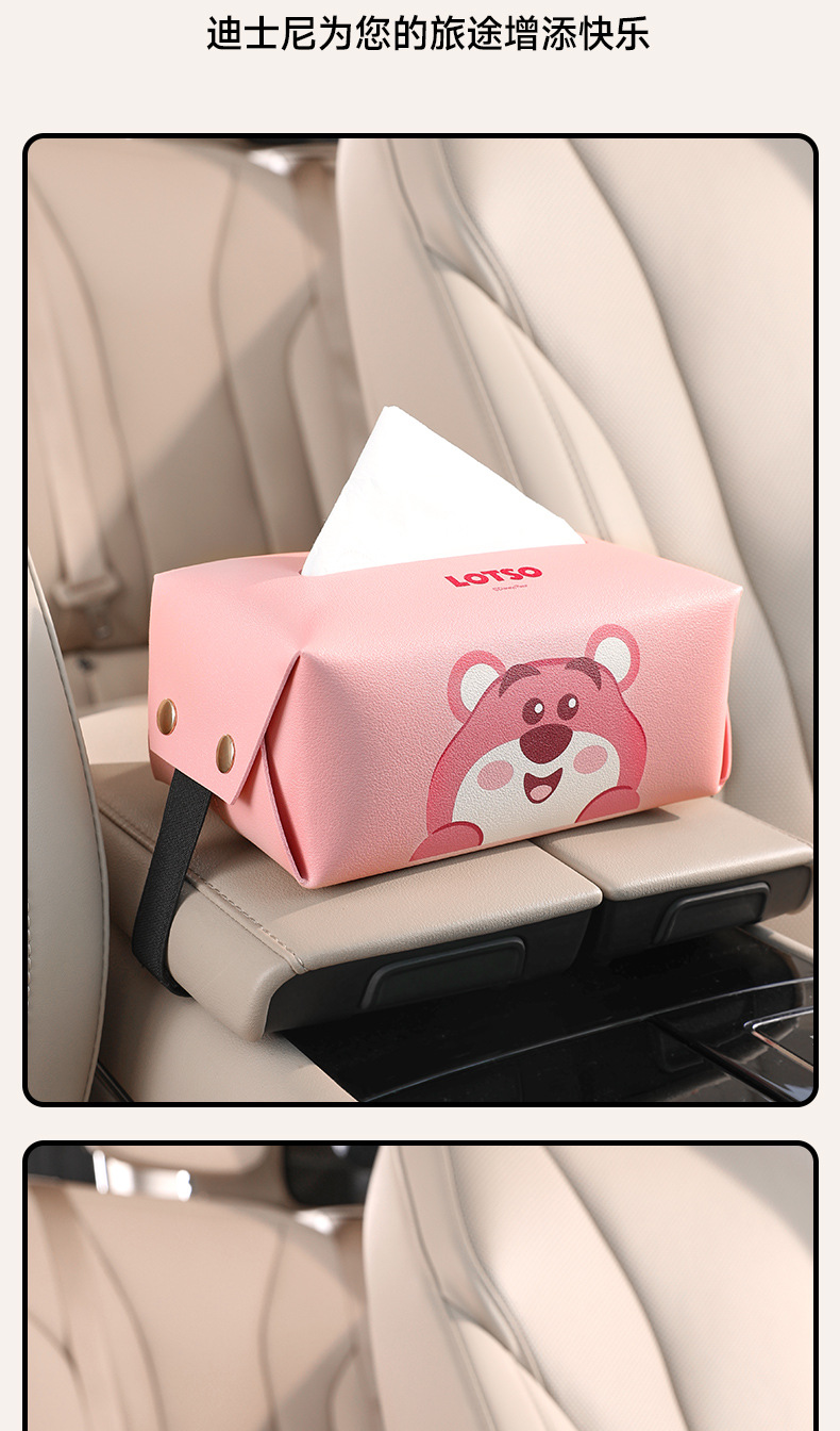 딸기 곰 자동차 조직 상자 귀여운 자동차 팔걸이 상자 종이 상자 자동차 저장 냅킨 자동차 종이 상자