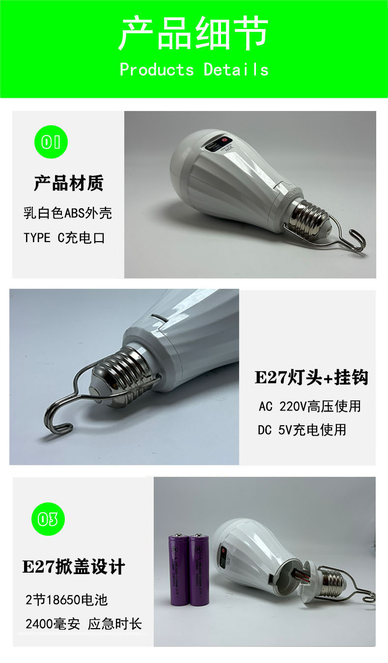 E27 스크류 LED 손전등 전구 램프 강조 강한 빛 에너지 절약 야시장 캠핑 눈 보호 15W 비상 조명 충전