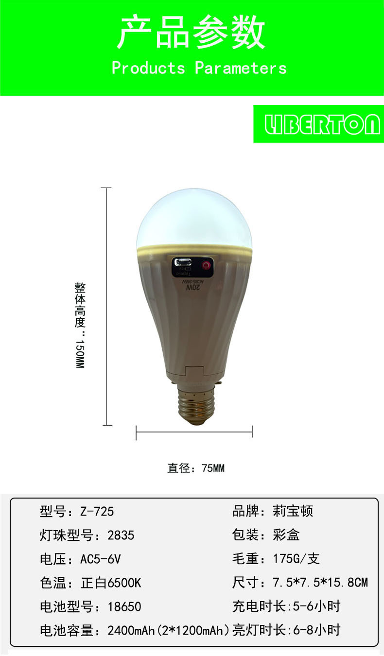 E27 스크류 LED 손전등 전구 램프 강조 강한 빛 에너지 절약 야시장 캠핑 눈 보호 15W 비상 조명 충전스토어 가기