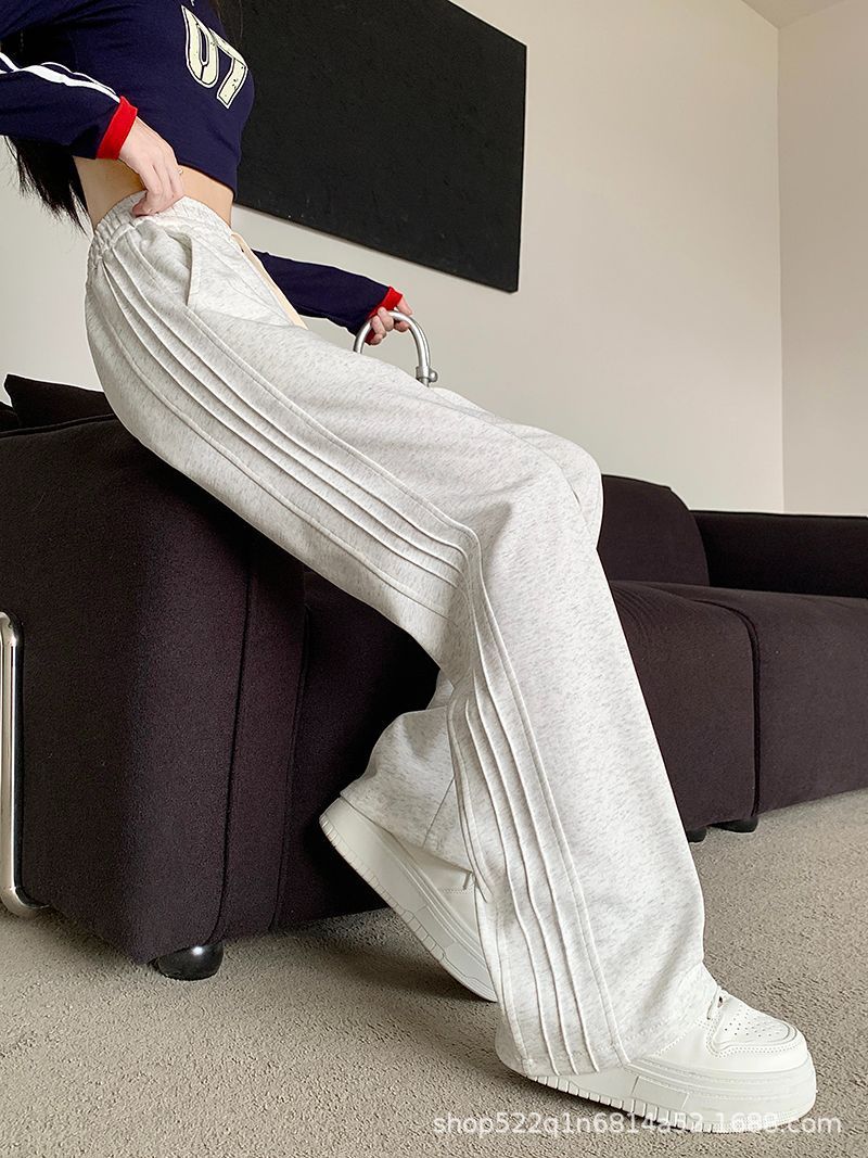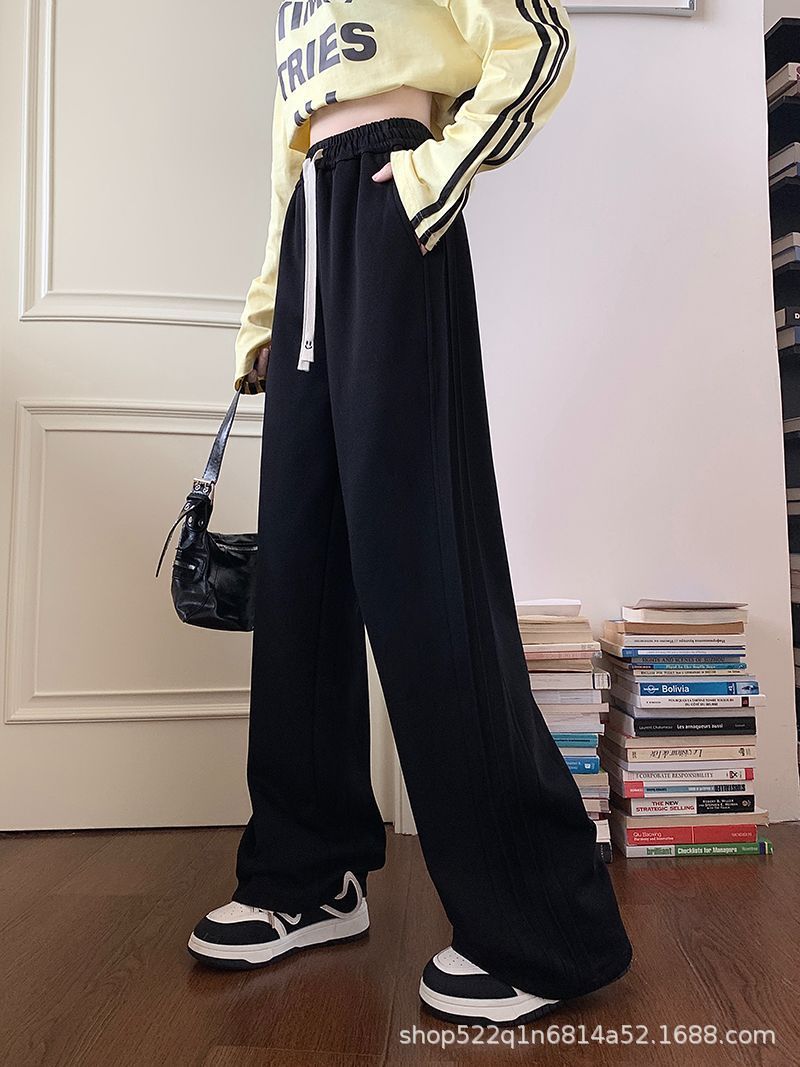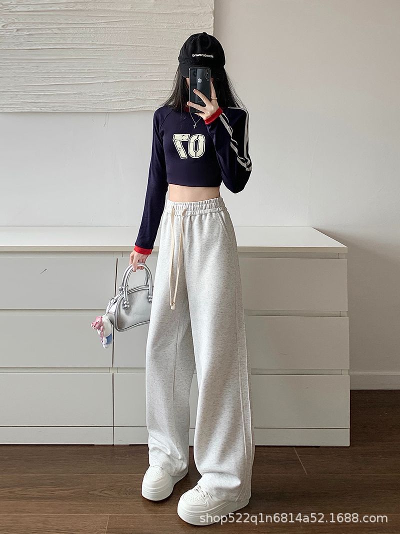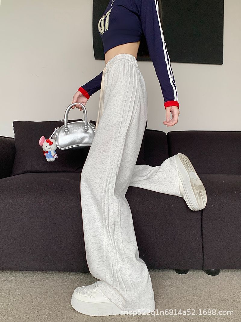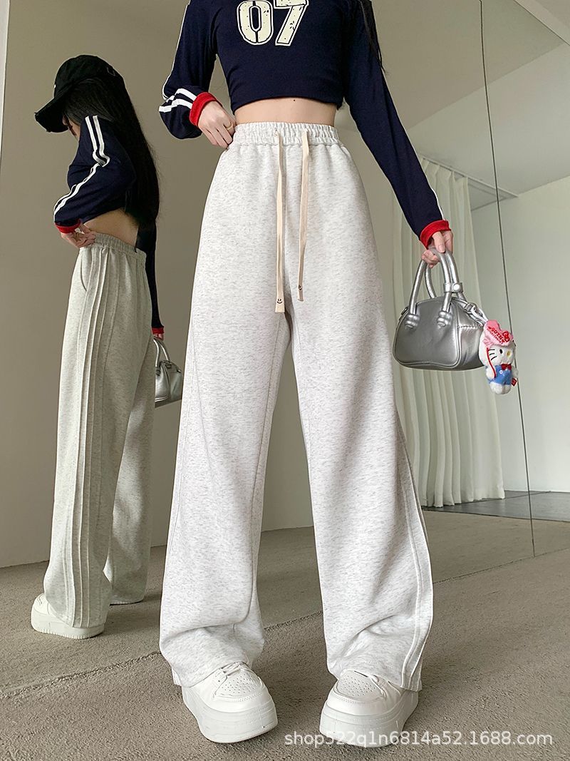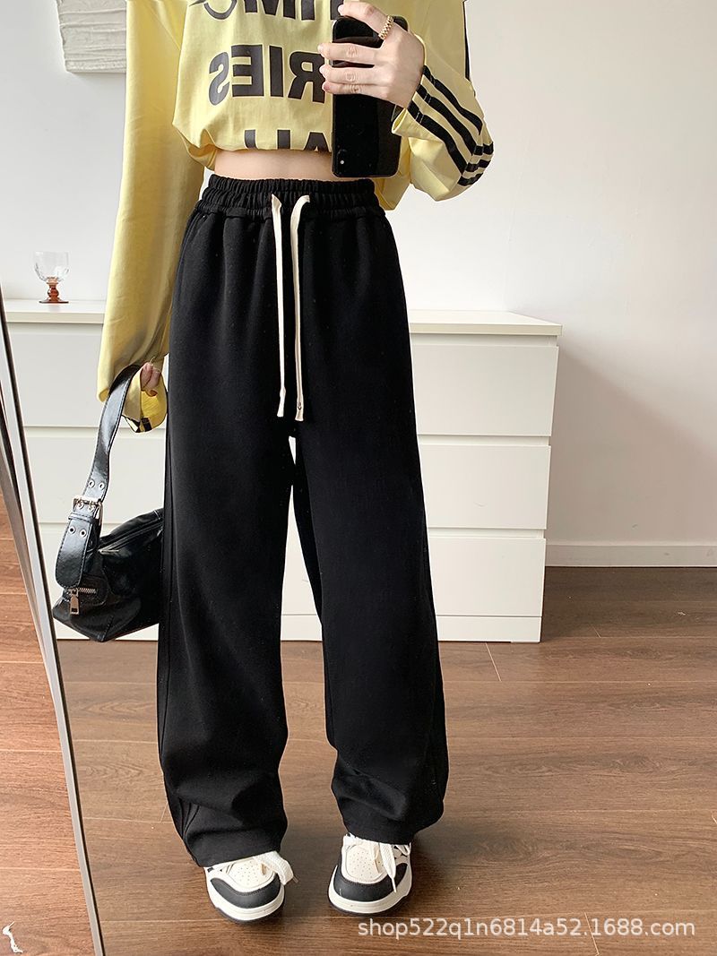 국경 스포츠 넓은 다리 바지 여성용 봄과 가을 새로운 높은 허리 느슨한 캐주얼 바지 기모 스웨트 팬츠 도매스토어 가기