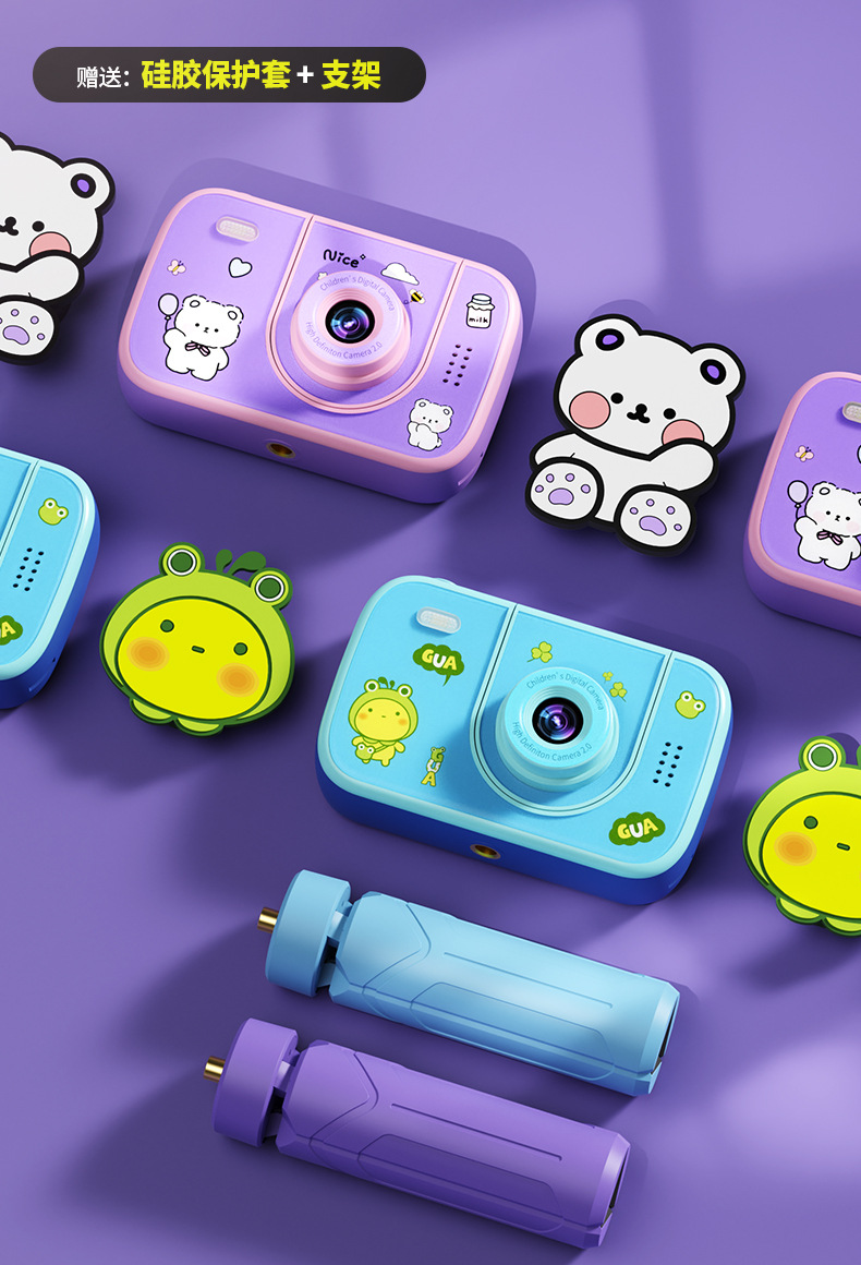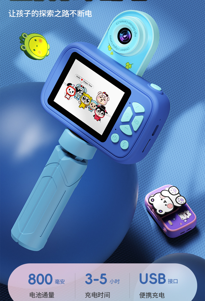 어린이용 디지털 카메라 스탠드형 180도 회전 렌즈 셀카 촬영 남아 여아 선물용 어린이 카메라