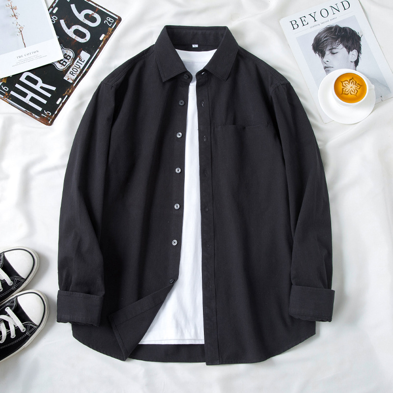 플러스 사이즈 블랙 남성용 셔츠 가을 캐주얼 느슨한 하이 엔드 작업복 셔츠 재킷 남성용 팻 플러스 플러스스토어 가기