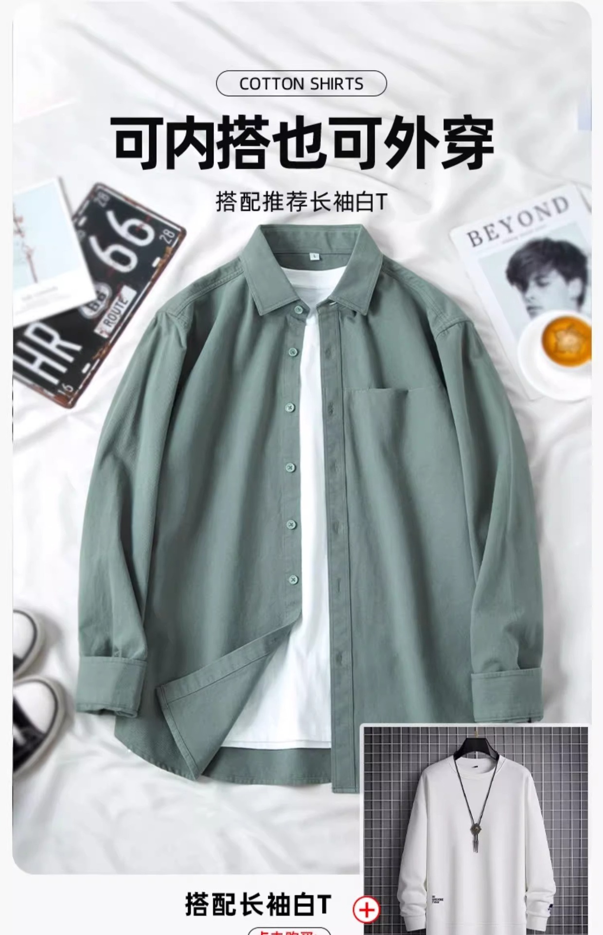 • 라이트카키[긴소매]순면셔츠(CS21609)