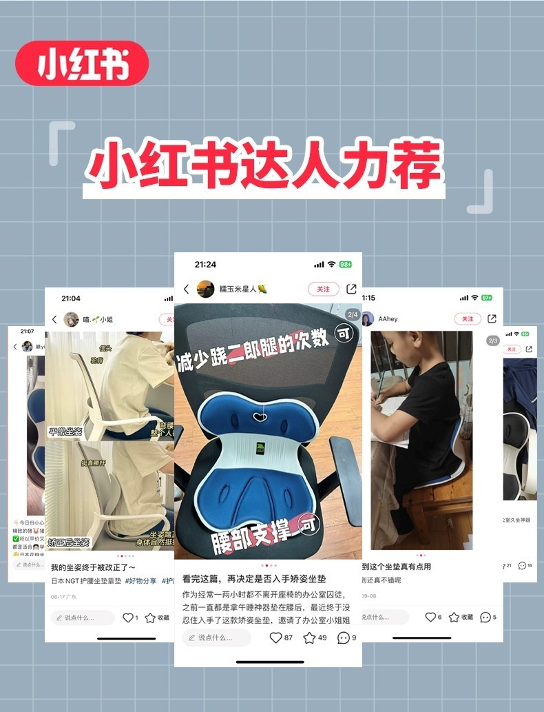 RrJ Japan NGT 쿠션 사무실 좌식 유물 어린이 허리 보호 교정 앉아있는 자세 학생 허리 쿠션 방귀