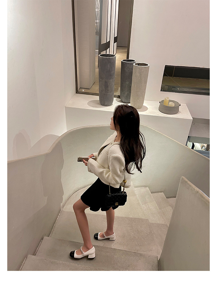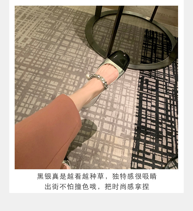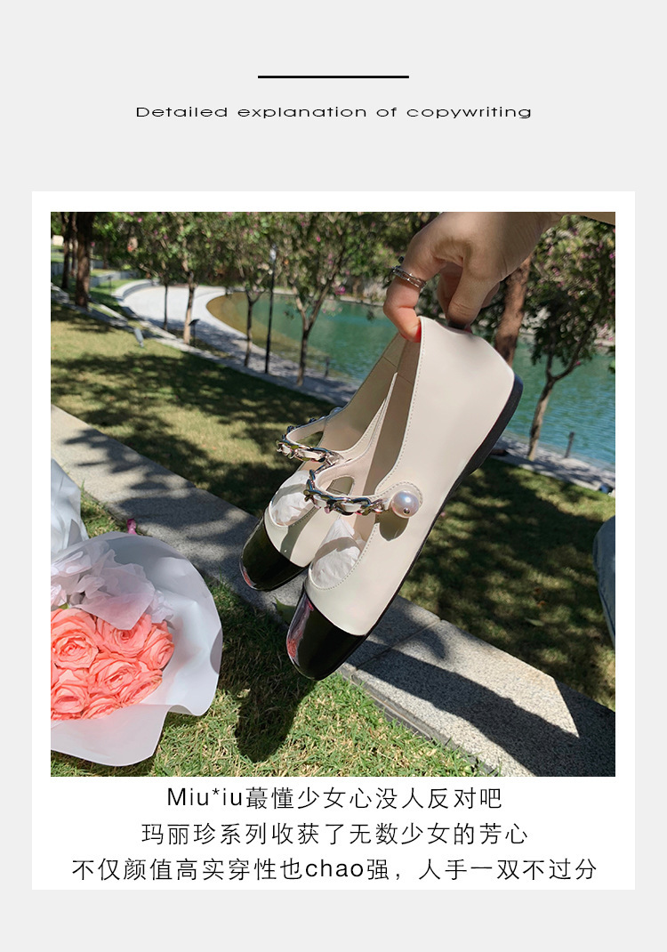 재고 샤넬 스타일 우아한 통근 캐주얼 라운드 헤드 펄 플랫 젠틀 메리 제인 신발 두꺼운 힐 두꺼운 단독 싱글 레이어 신발스토어 가기