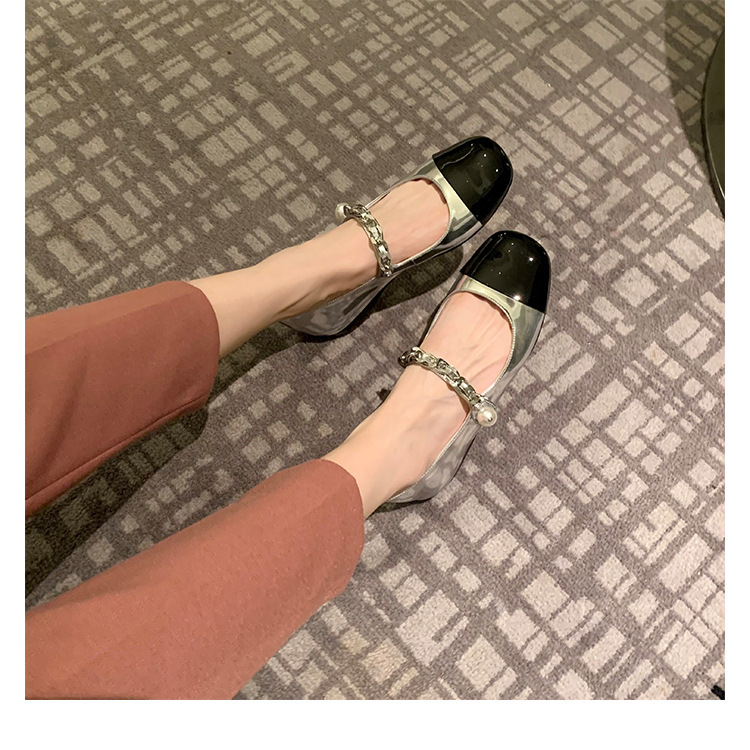• 블랙 실버 [두꺼운 힐]