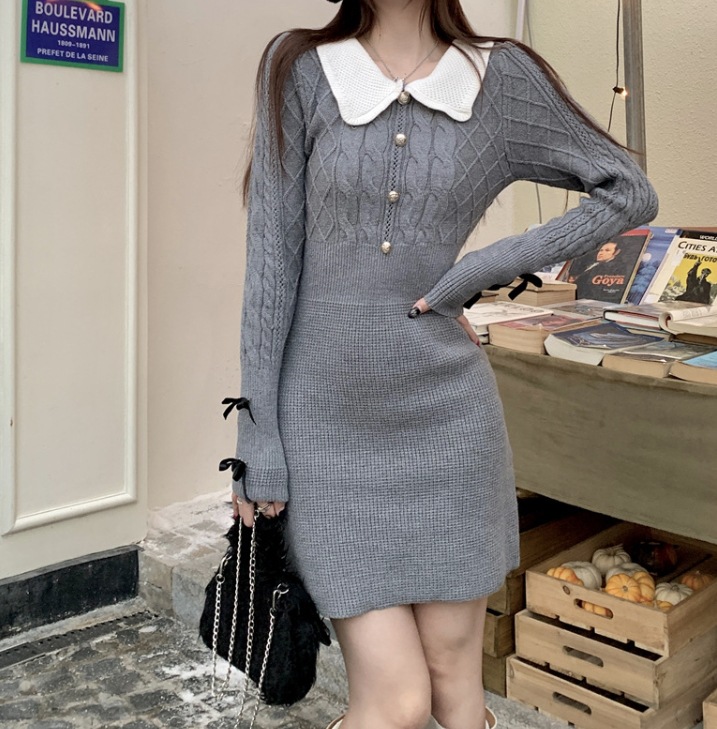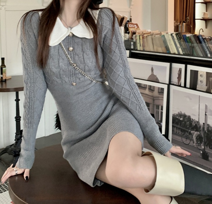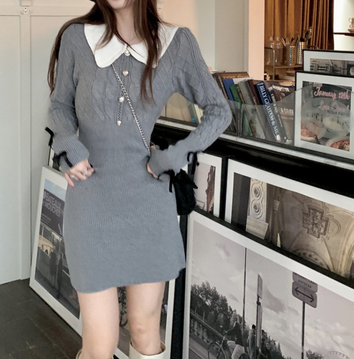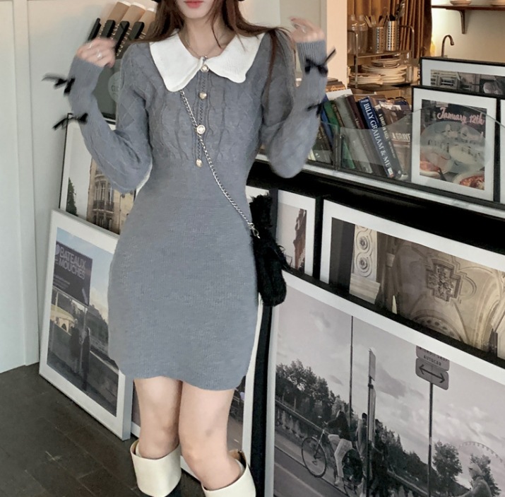 2025 달콤하고 매운 스웨터 원피스 여성의 가을과 겨울 새로운 허리 스파이스 소녀 니트 힙합 스커트 짧은 스커트 그레이 스커트