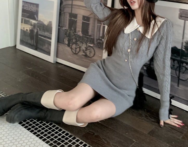 2025 달콤하고 매운 스웨터 원피스 여성의 가을과 겨울 새로운 허리 스파이스 소녀 니트 힙합 스커트 짧은 스커트 그레이 스커트스토어 가기