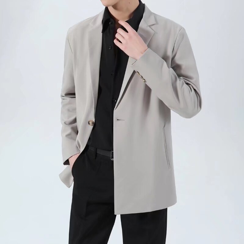 봄과 가을 비즈니스 커뮤니케이션 스타일 비 다림질 캐주얼 세트 재킷 남성 싱글 웨스턴 하이 엔드 슬림-남성용 간단한 자켓스토어 가기