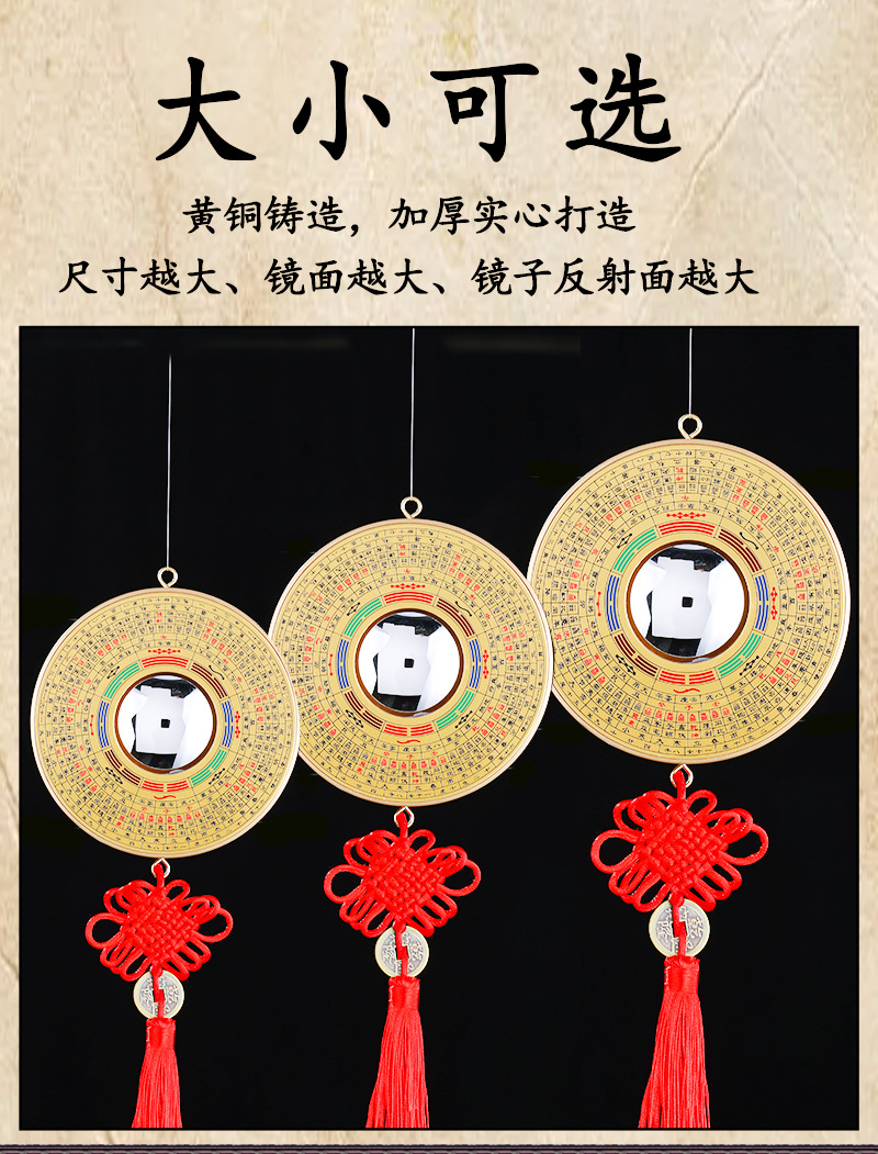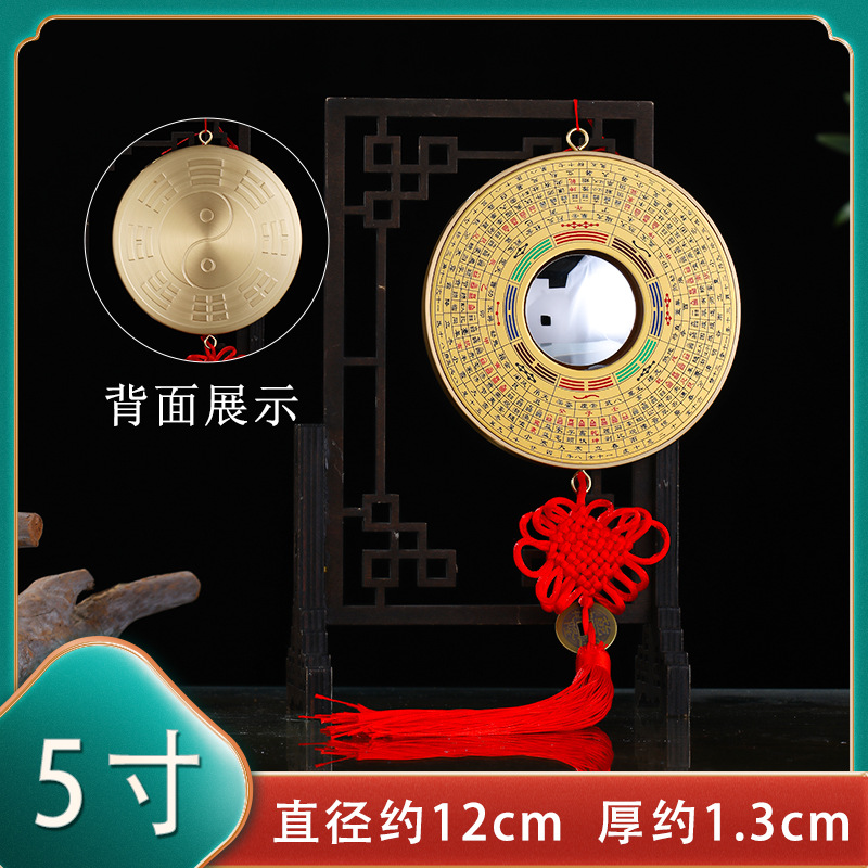 나침반 바구아 거울 순수 구리 문 가정용 볼록 볼록 거울 컨캐브 미러 태극권 라운드 바구아 홈 도어 장식품