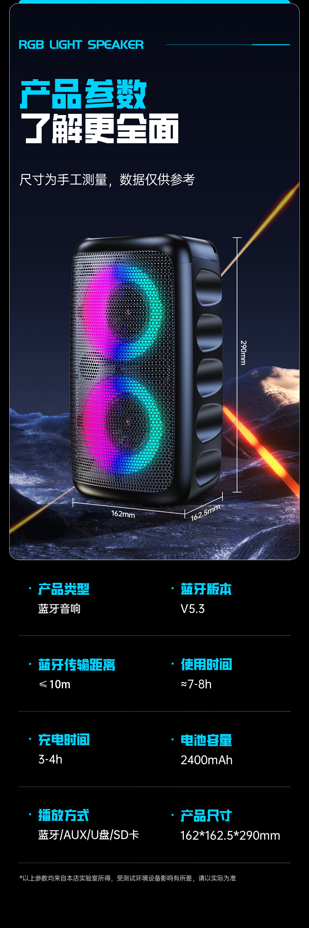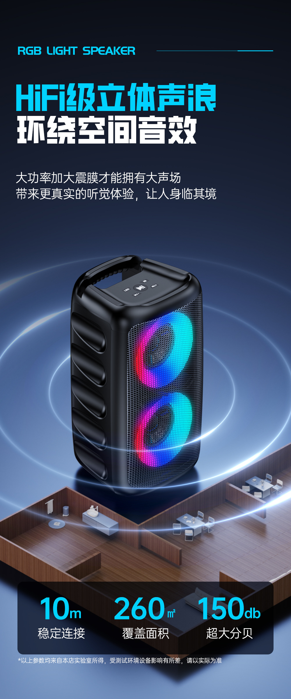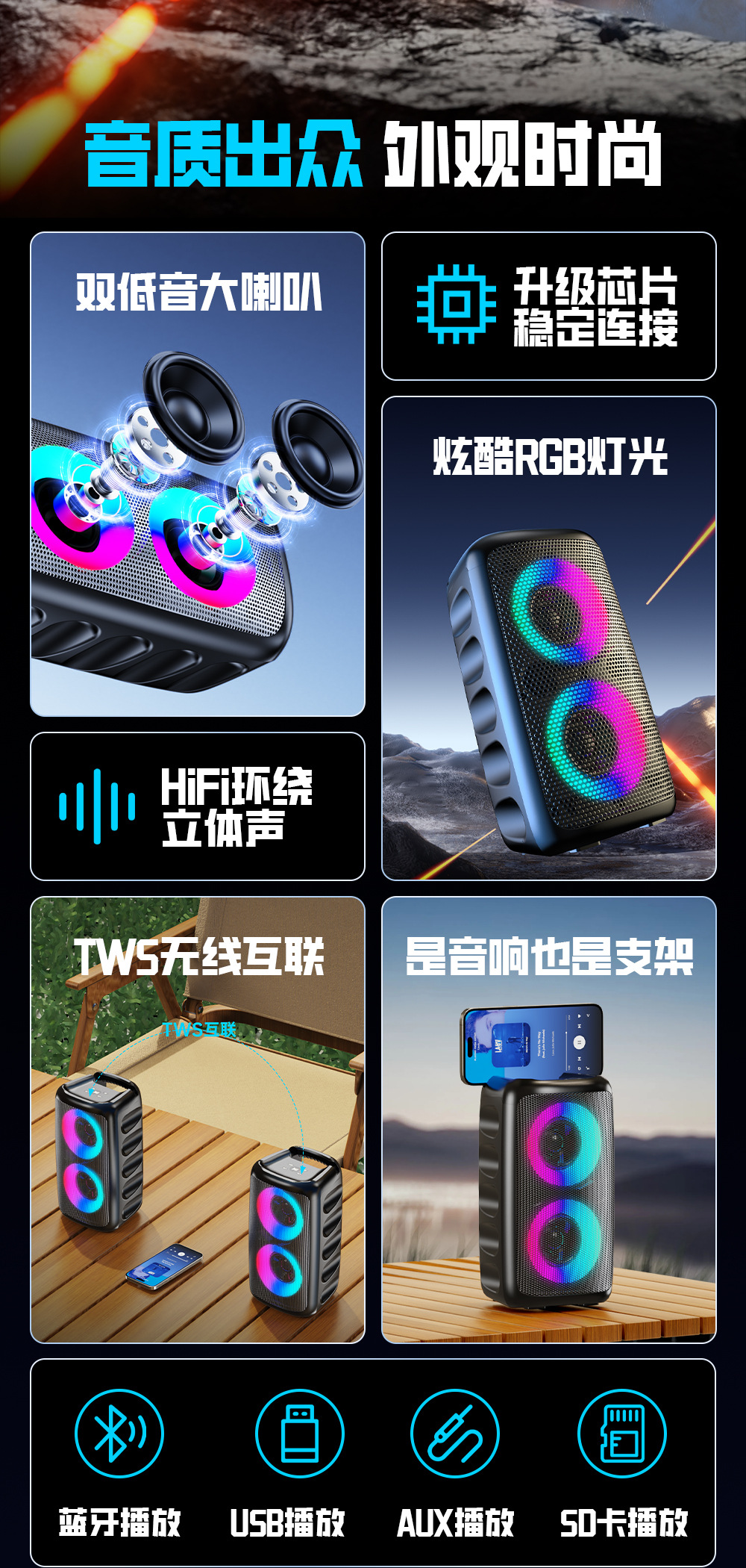 국경 간 인기 제품, 다채로운 블루투스 스피커, 공장 무선 블루투스 스피커 야외 마이크 스퀘어 댄스 오디오