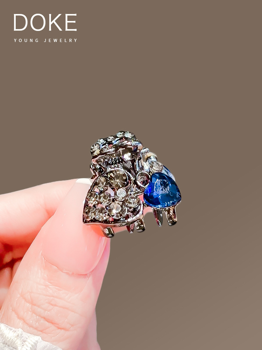 • 블랙 블루 다이아몬드 미니 집게핀 - 빅 하트 156