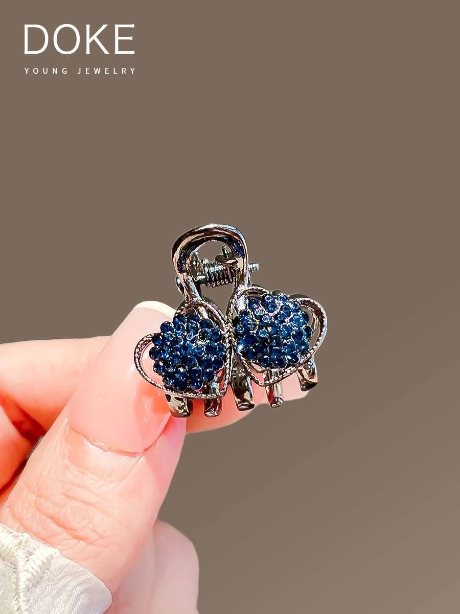 • 블랙 블루 다이아몬드 미니 집게핀 - 더블 하트 158