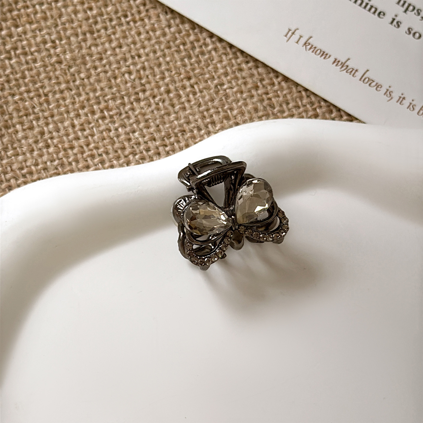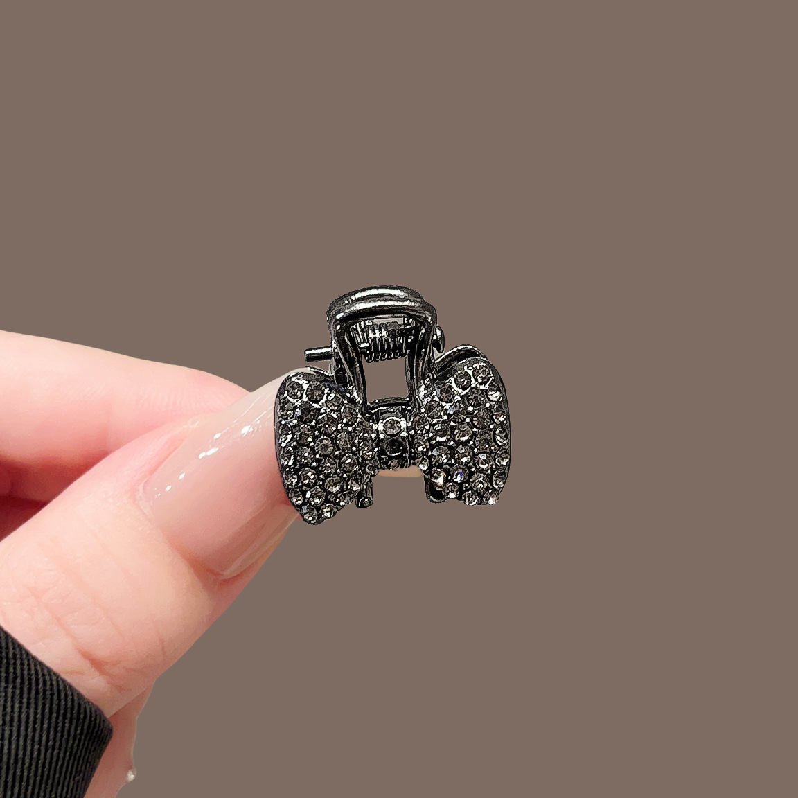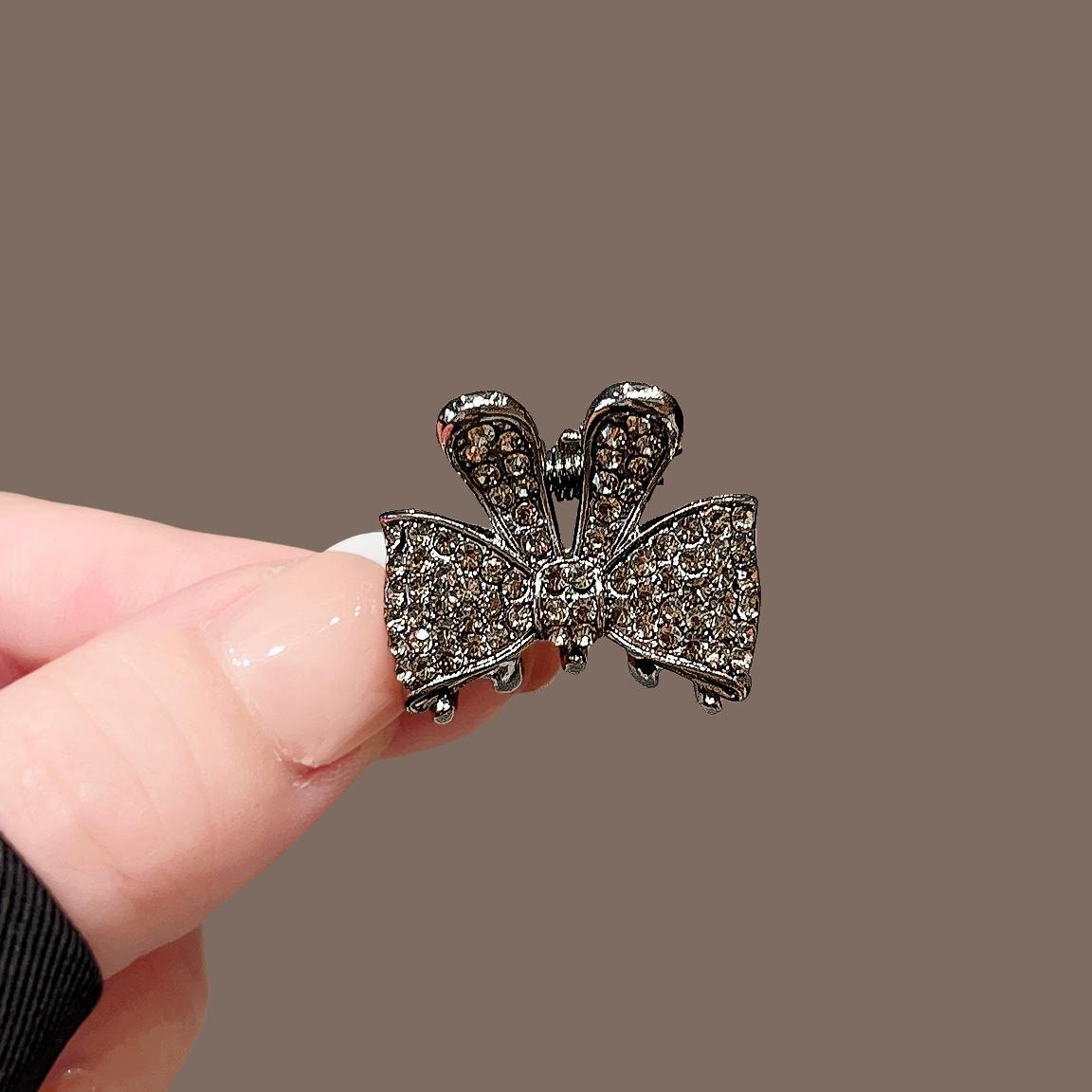 • 건메탈 풀 다이아몬드 나비 매듭 미니 집게핀 2종 139위안