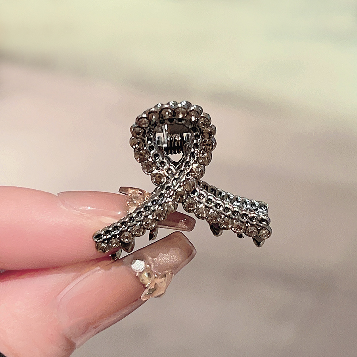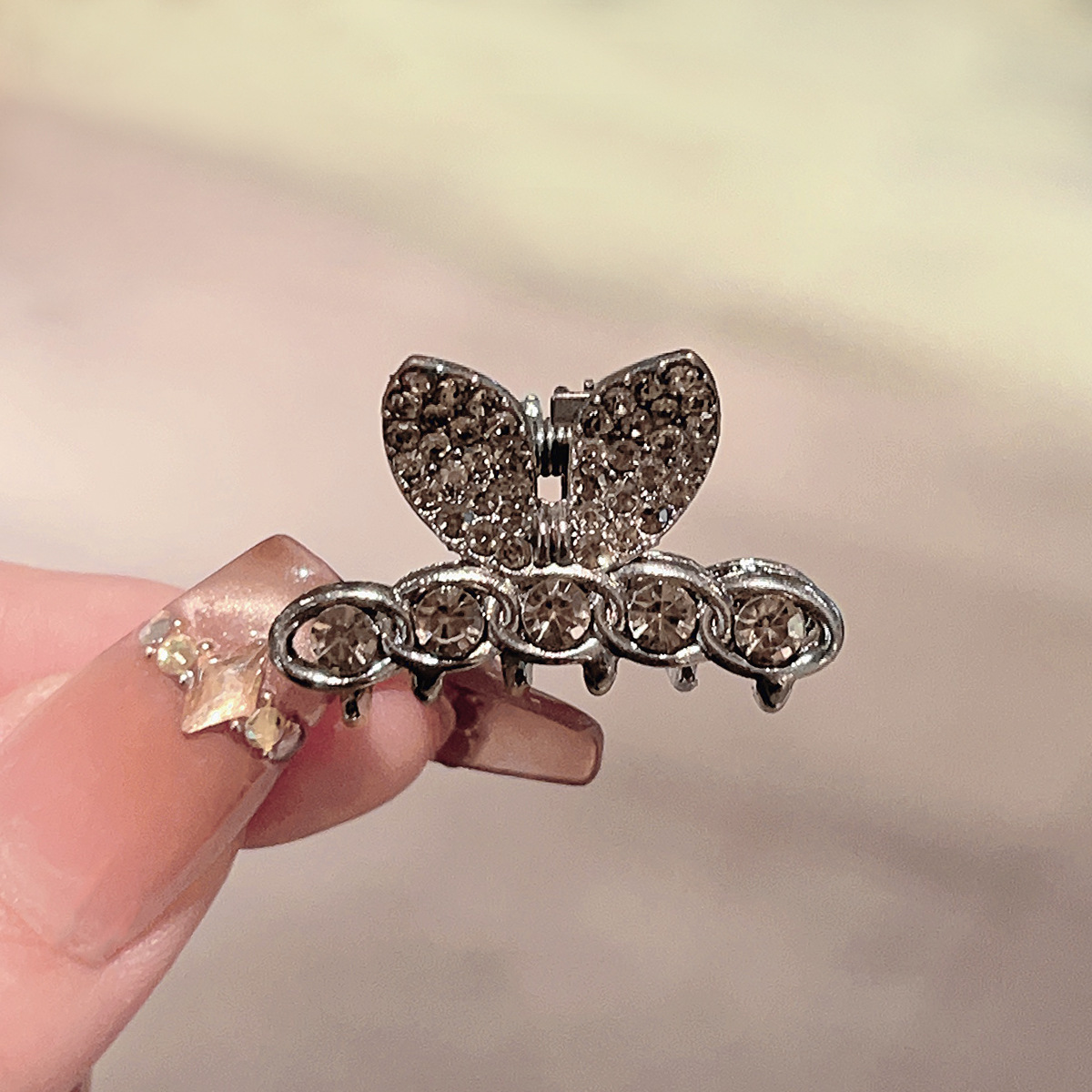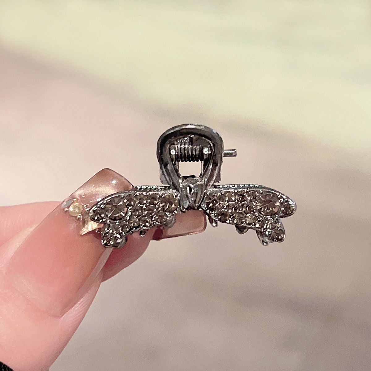 • 건메탈 풀 다이아몬드 나비 매듭 미니 집게핀 2종 139위안