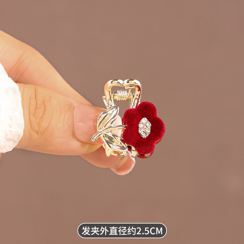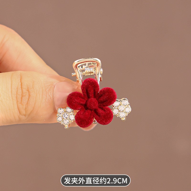 • 빨간색 벨벳 플라워 미니 집게핀 192