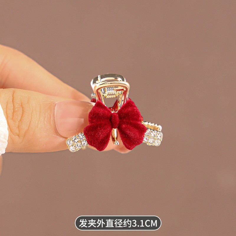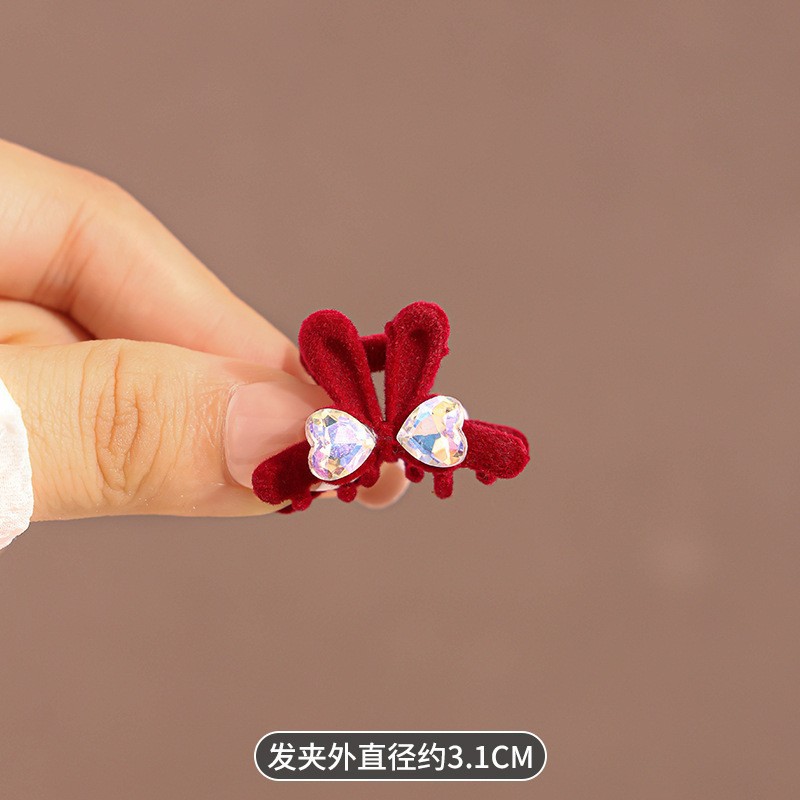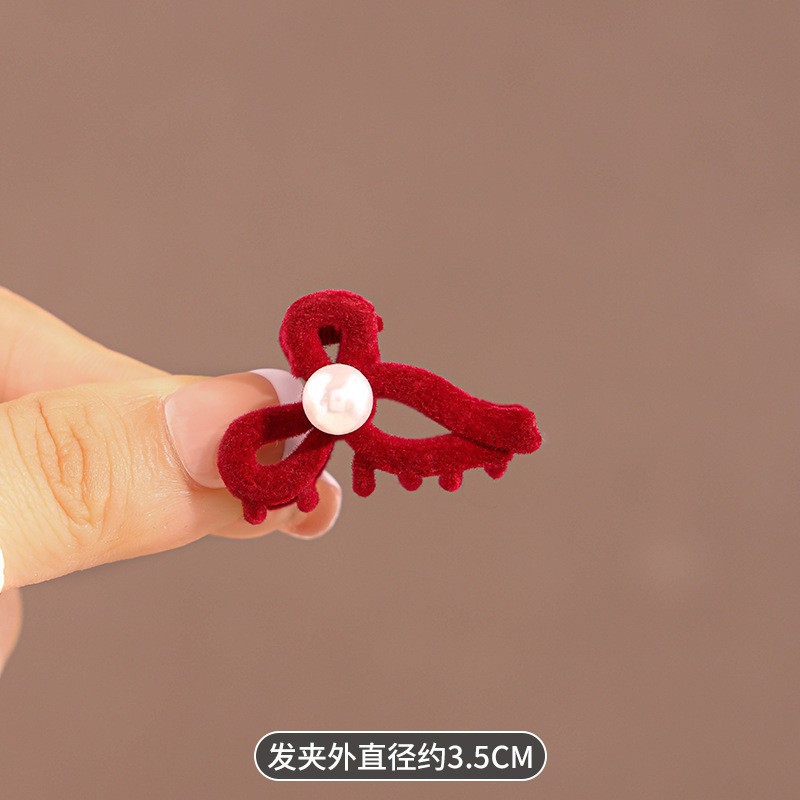 • 빨간색 벨벳 진주 나비 매듭 미니 집게핀 197