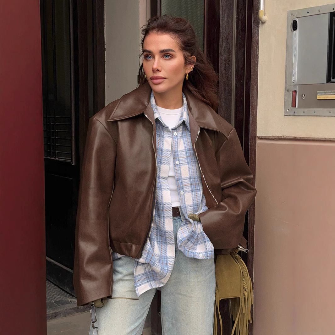 오토바이 스타일 가죽 자켓 2024 유럽과 미국 가을과 겨울 새로운 느슨한 코트 패션 크로스 보더 가죽 코트 새로운 여성 코트스토어 가기