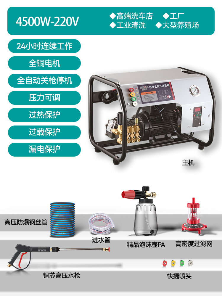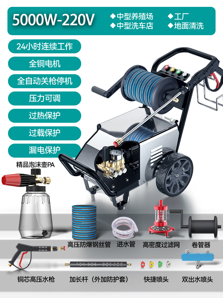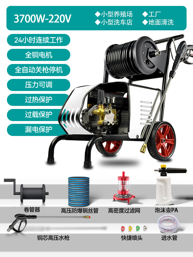 Y380 고압 펌프 산업용 등급 매장 세척 검은 고양이 세차기 물총 상업용 고출력 청소 기계 220v 세차스토어 가기