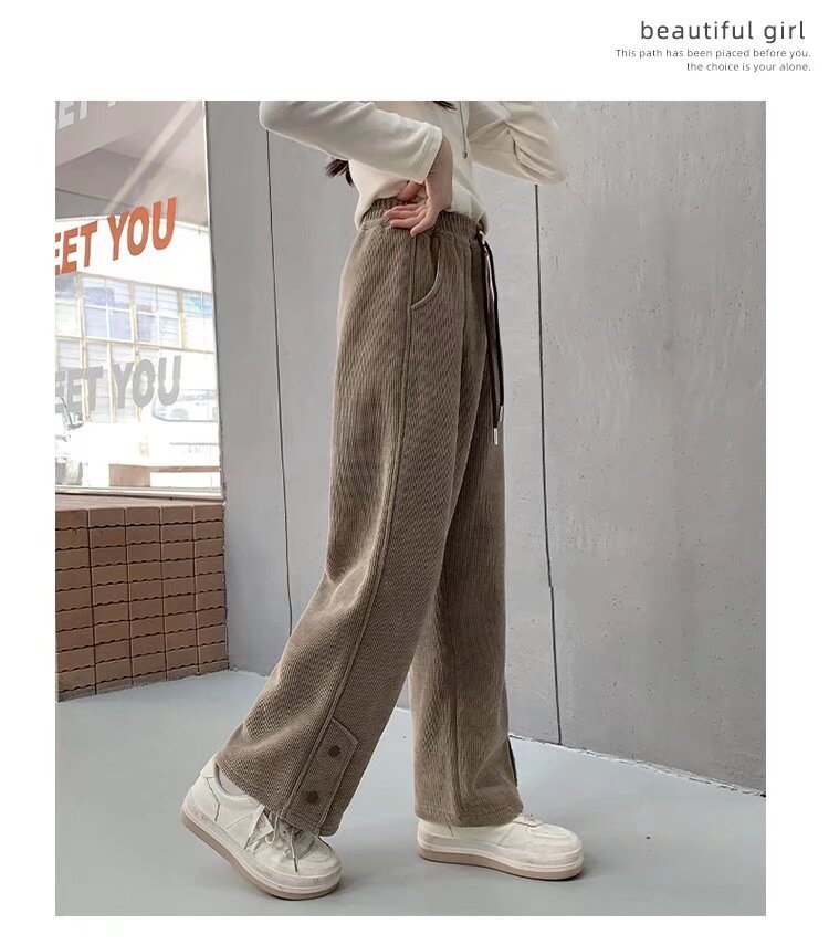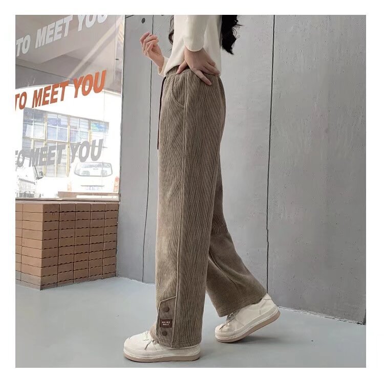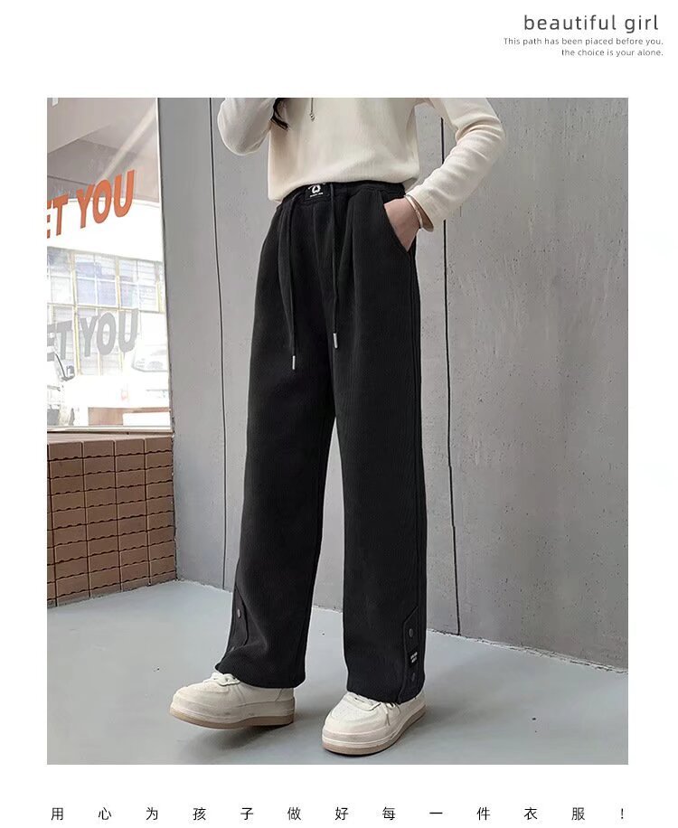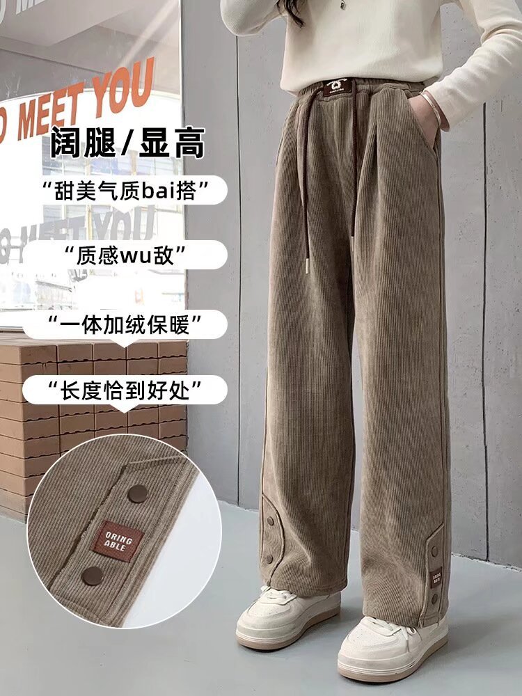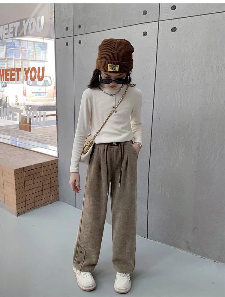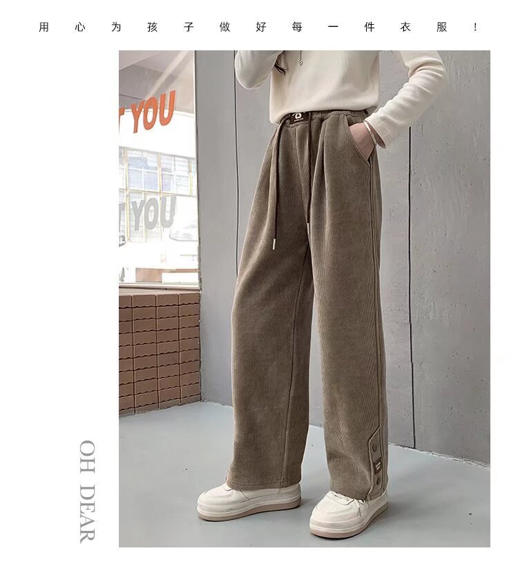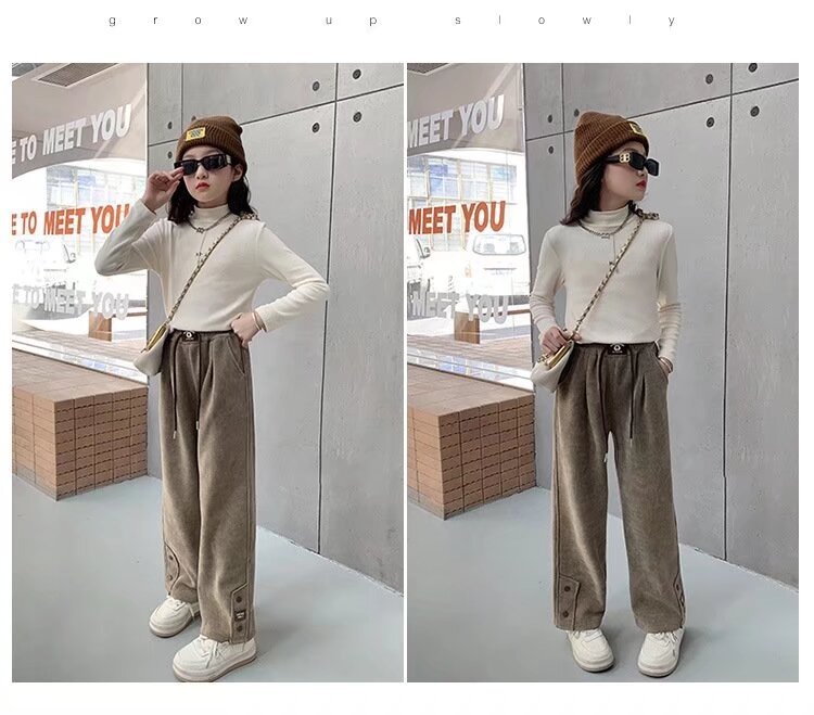 소녀 가을 바지 봄과 가을 통합 벨벳 가을과 겨울 넓은 다리 바지 어린이 기모 캐주얼 스트레이트 바지 큰 어린이 가을 착용스토어 가기
