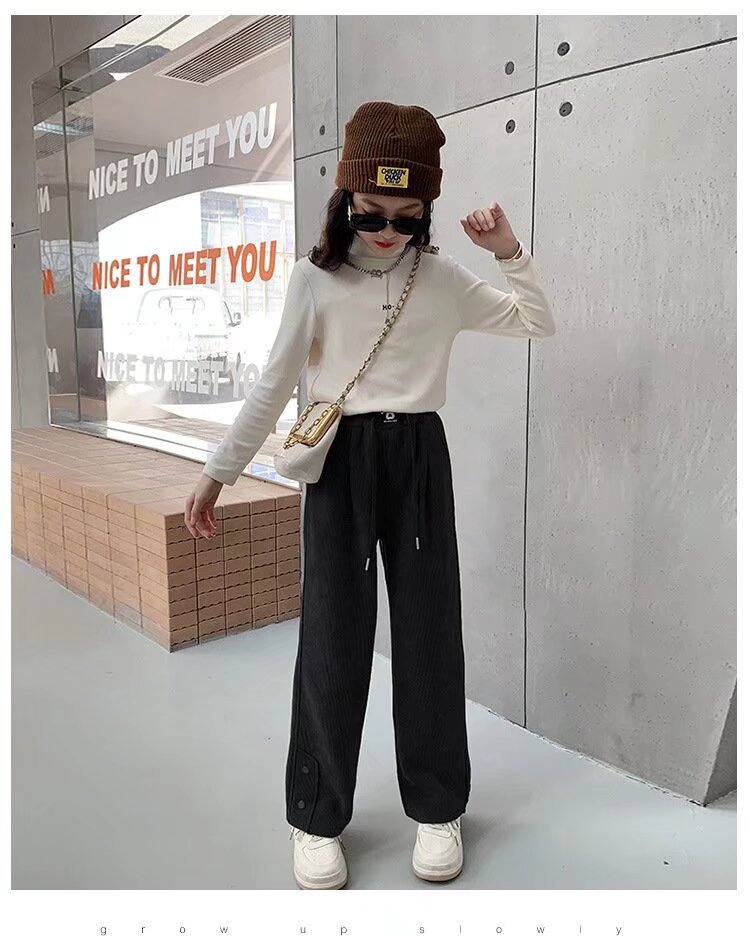소녀 가을 바지 봄과 가을 통합 벨벳 가을과 겨울 넓은 다리 바지 어린이 기모 캐주얼 스트레이트 바지 큰 어린이 가을 착용