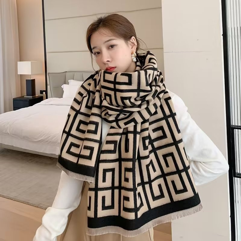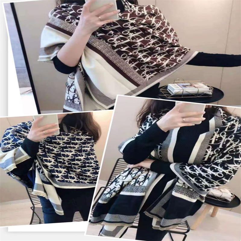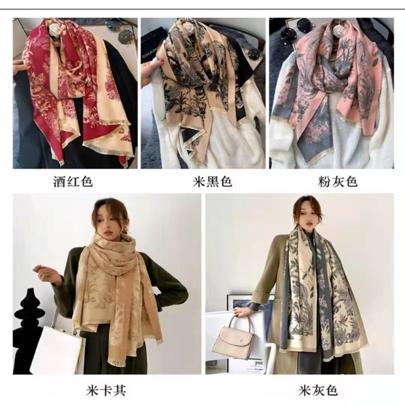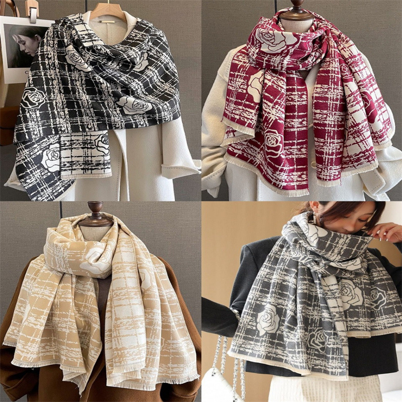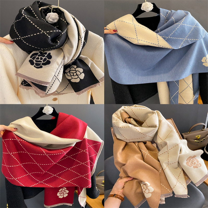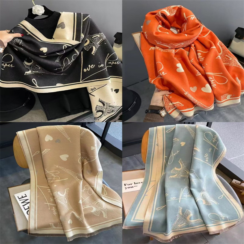 2024 가을과 겨울 새로운 캐시미어 스카프 여성의 유럽과 미국 스타일 타워 패턴 따뜻한 외부 다중 사용 스카프스토어 가기