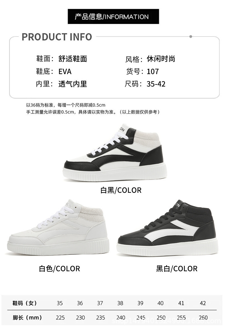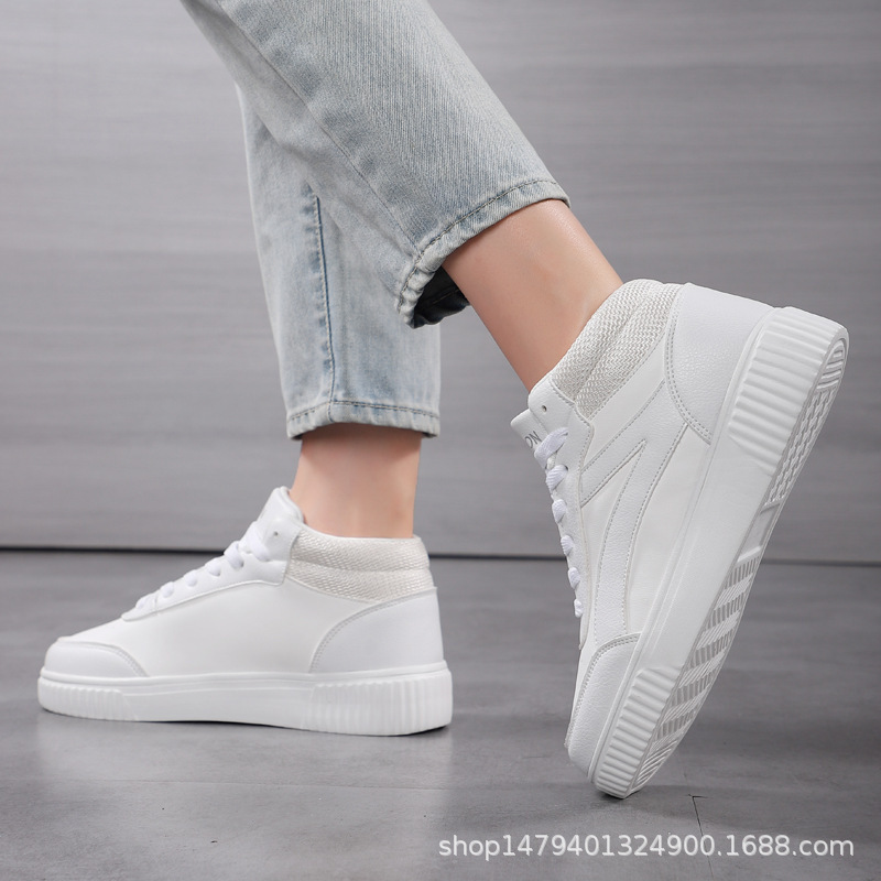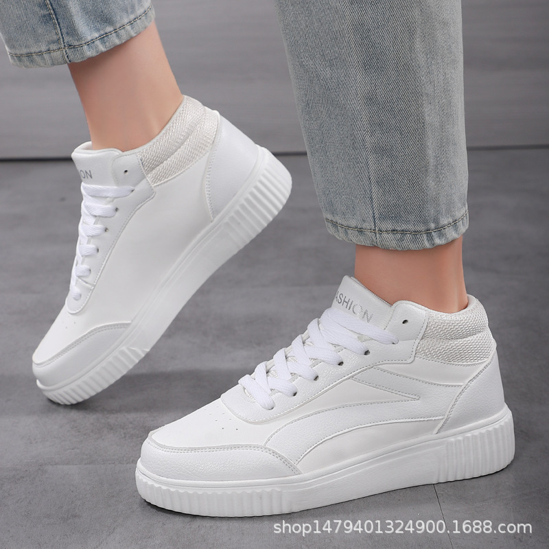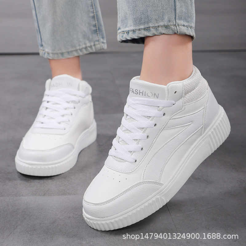 국경 간 새로운 두꺼운 밑창 증가 된 흰색 신발 미드 탑 트렌디 올 매치 학생 보드 신발 여성 캐주얼 스포츠 여성 신발스토어 가기