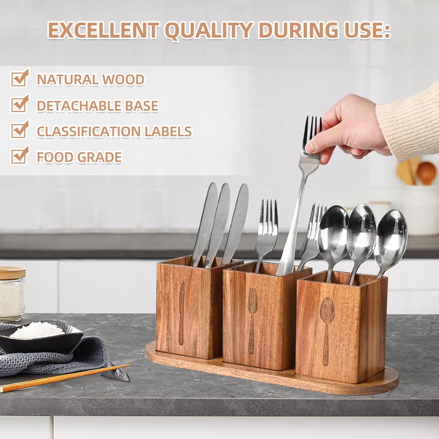 나무 식기 상자 가정용 레스토랑 멀티 그리드 나이프와 포크 저장 상자 젓가락 케이지 나무 트레이 보관 상자를 구성