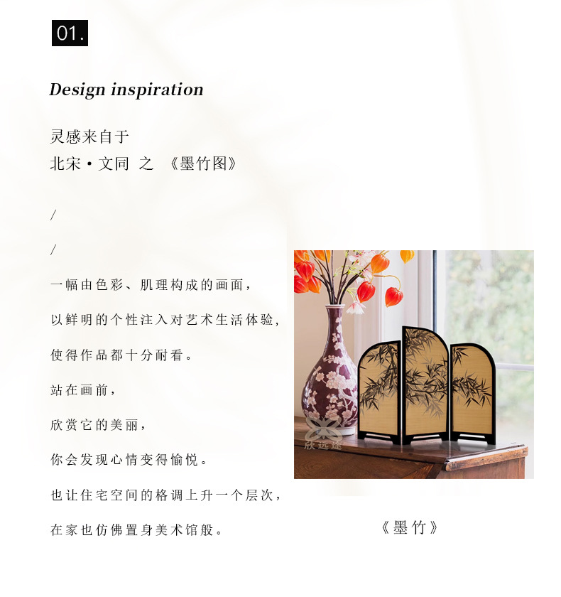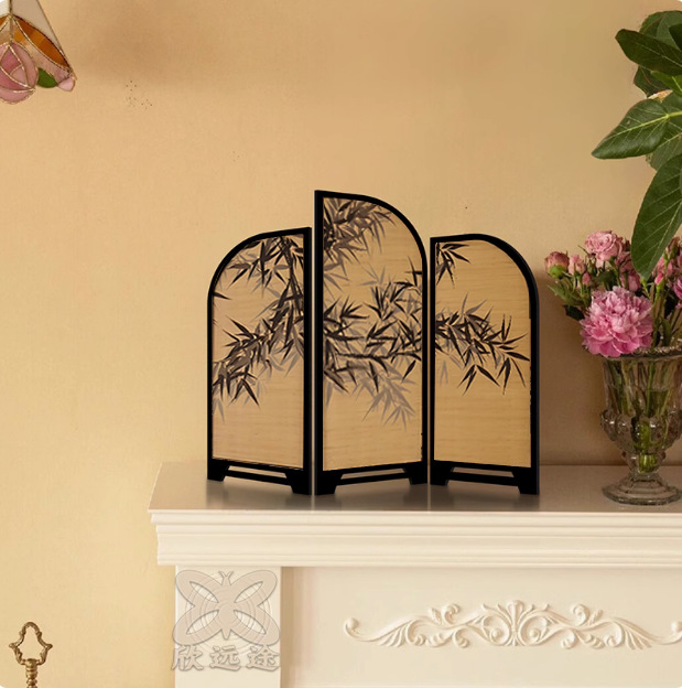 신중국풍 스크린 텔레비전 캐비닛 탁상 장식품 '묵죽'(墨竹) 고전풍 현관 가구 차탁 장식 그림