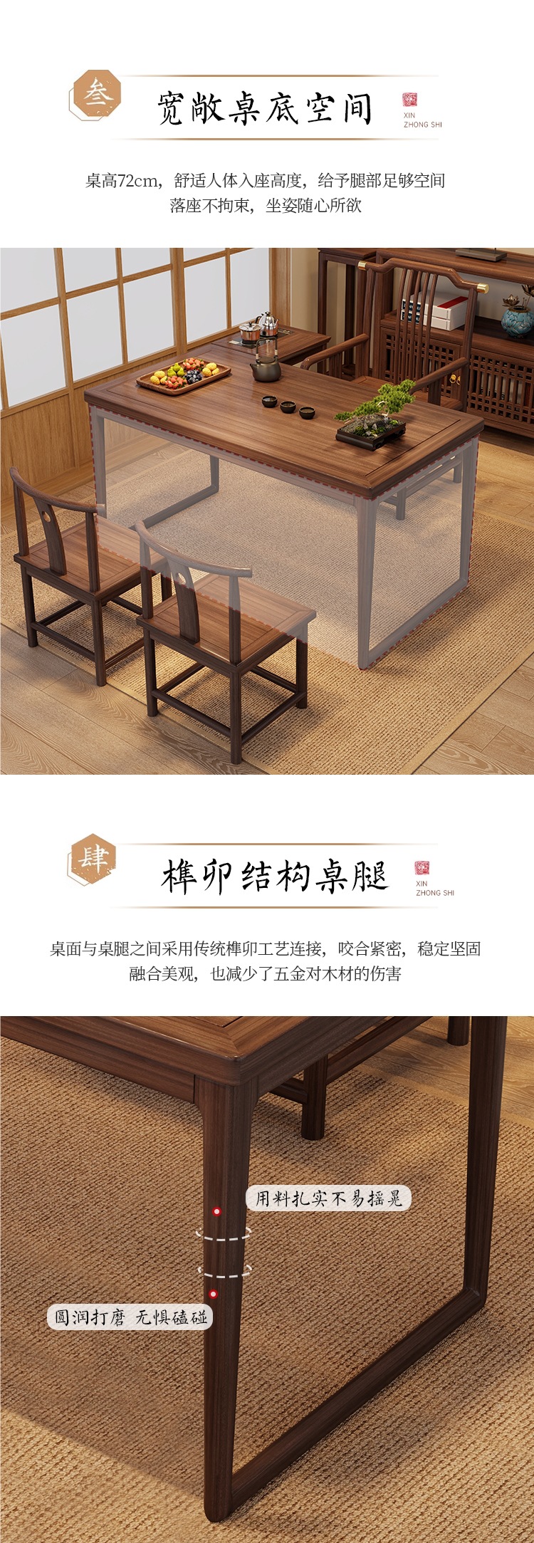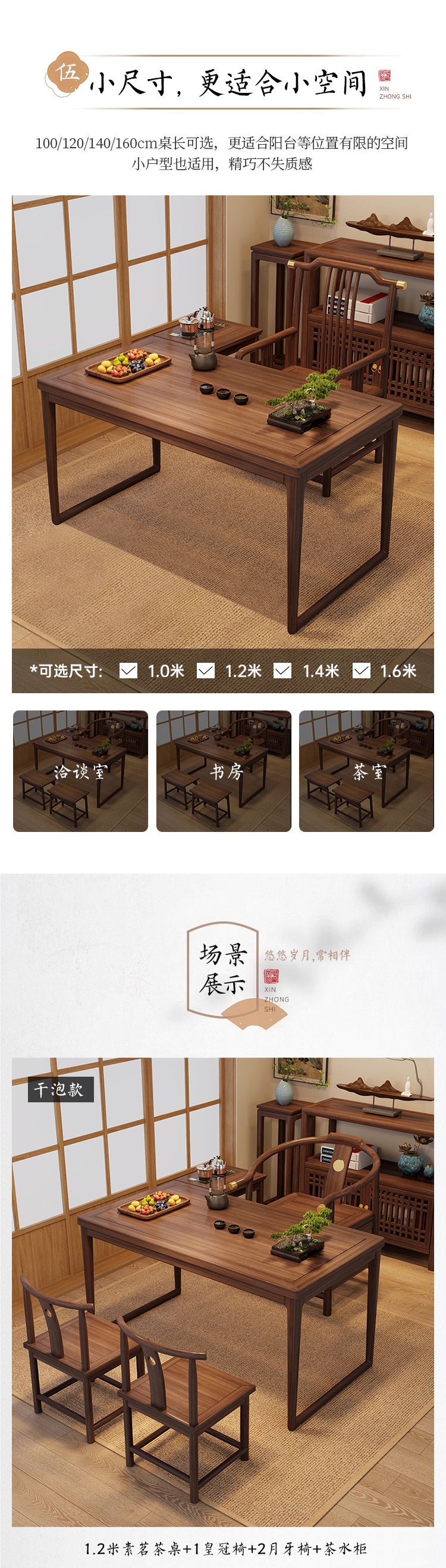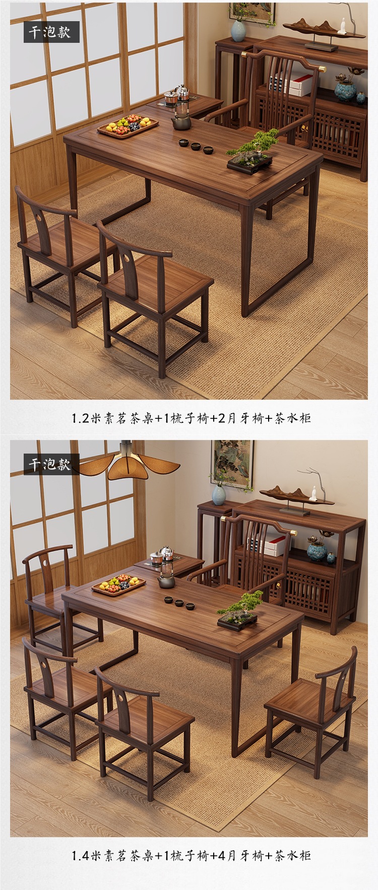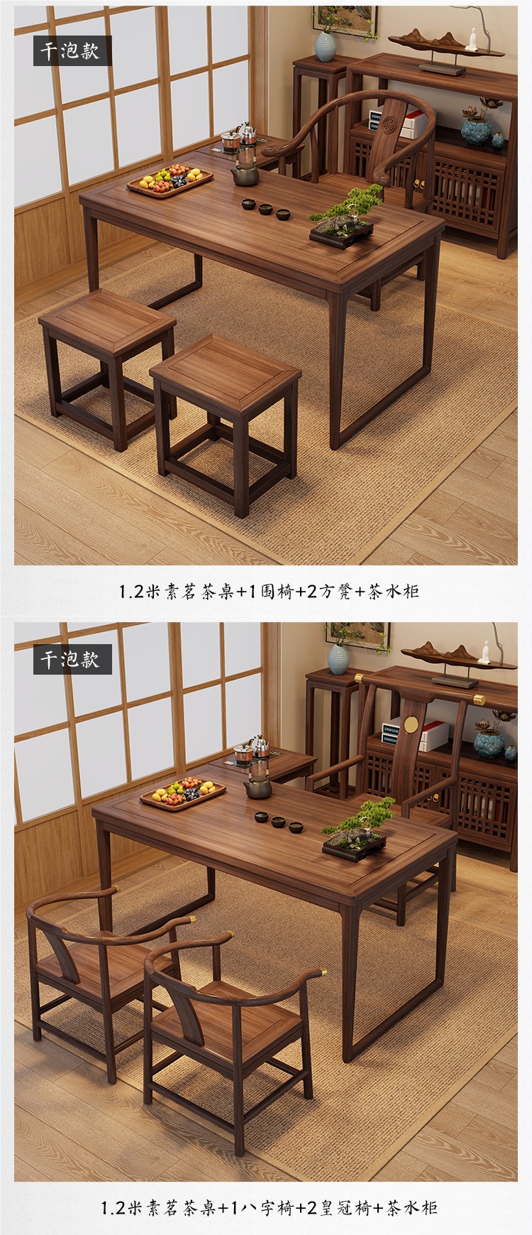 • 1.2m 티 테이블 + 크라운 의자 1개, Yuanbao 의자 2개 + 사이드 캐비닛 1개