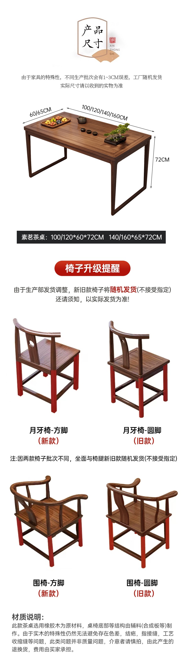 • 1.0m 티 테이블 + 크라운 의자 1개, Yuanbao 의자 2개 + 사이드 캐비닛 1개