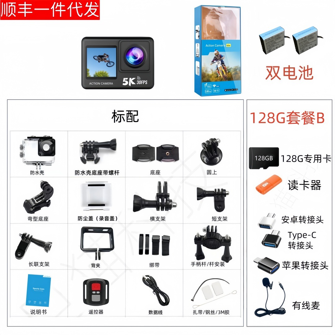 국경 새로운 5k HD 스포츠 흔들림 방지 카메라 듀얼 컬러 스크린 와이파이 원격 제어 야외 승마 카메라스토어 가기