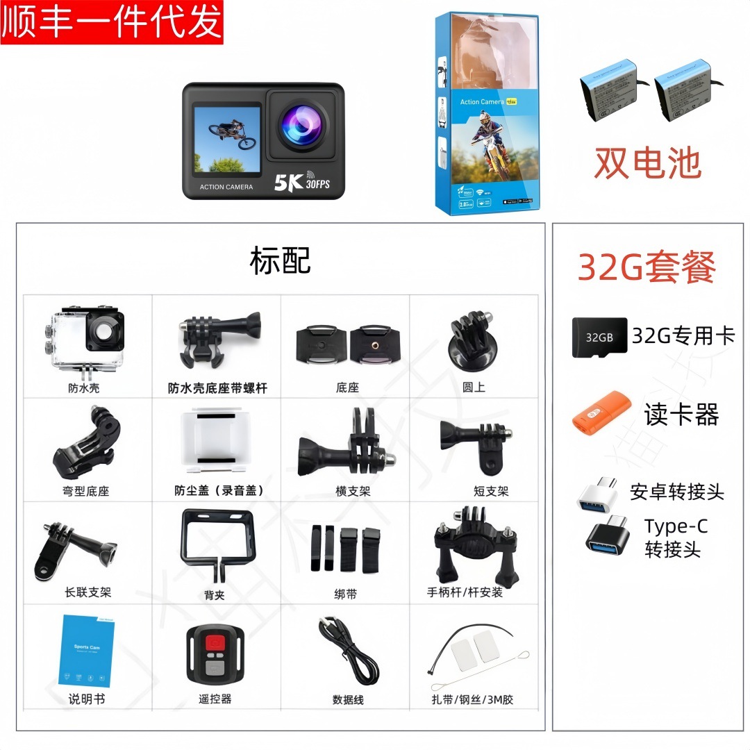 국경 새로운 5k HD 스포츠 흔들림 방지 카메라 듀얼 컬러 스크린 와이파이 원격 제어 야외 승마 카메라