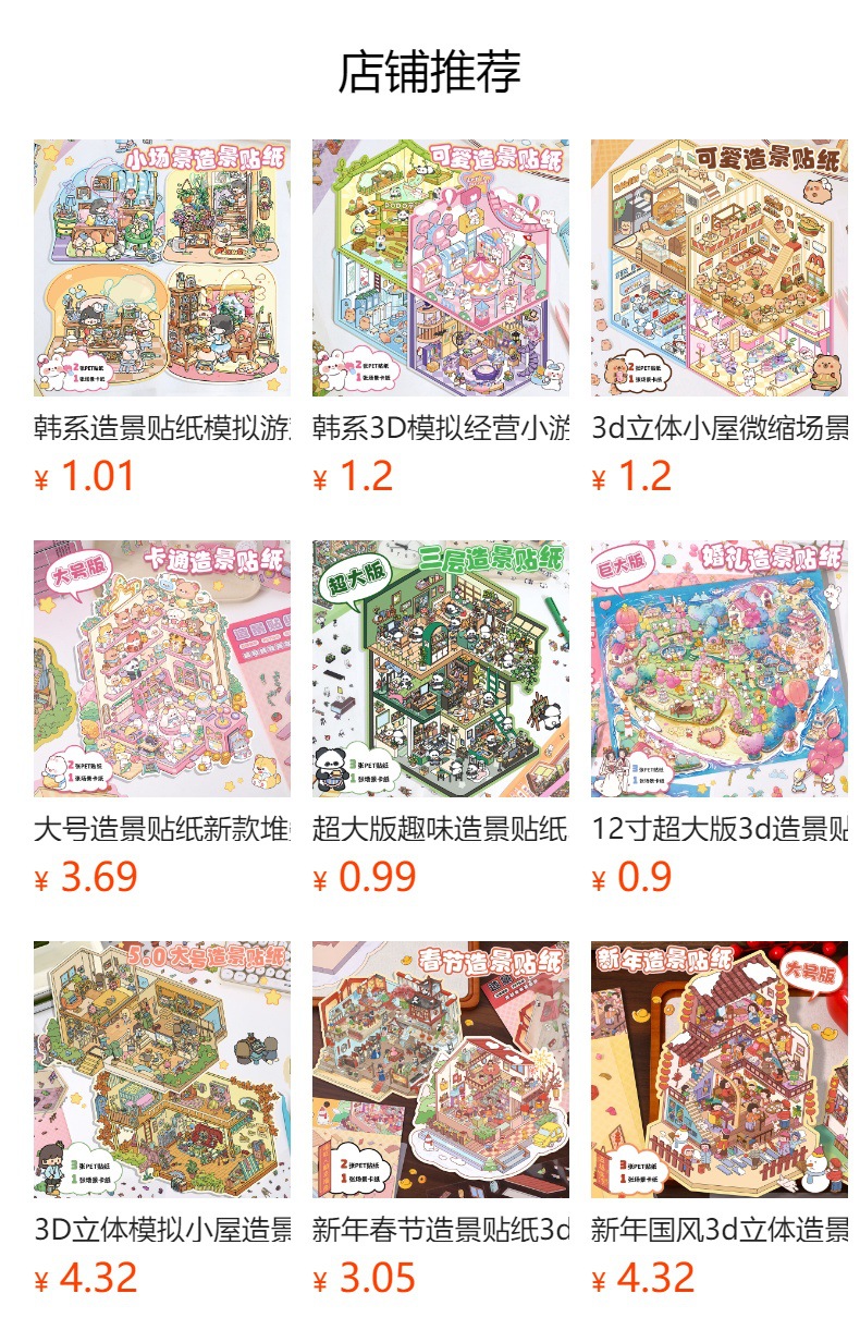 한국 스타일 풍경 스티커 만화 3D 입체 오두막 귀여운 마이크로 스케일 장면 작은 빨간 승마 책 같은 콜라주 손 계정 스티커스토어 가기