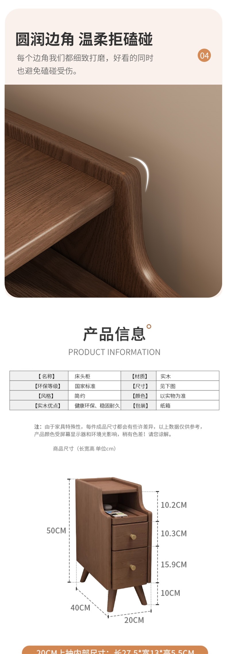 단단한 나무 침대 옆 탁자 작은 아주 좁은 침대 옆 내각 울트라 좁은 20cm 30cm 좁은 측면 저장 랙