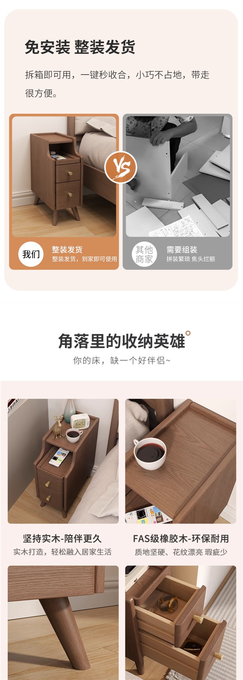 단단한 나무 침대 옆 탁자 작은 아주 좁은 침대 옆 내각 울트라 좁은 20cm 30cm 좁은 측면 저장 랙스토어 가기